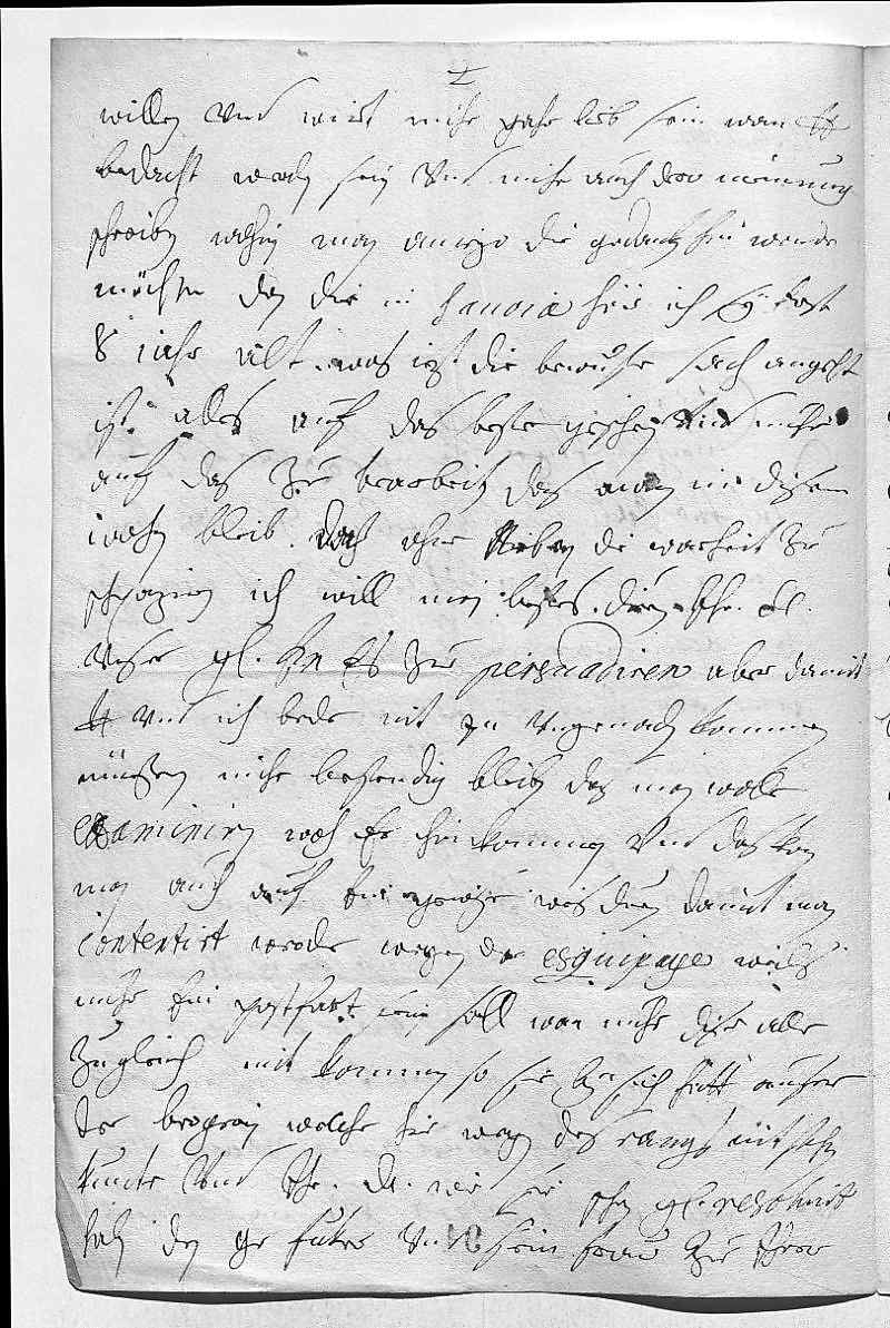 0014willen. Vnd wirt mihr gahr lieb sein, wan dero Liebden 0015bedacht werden sein vnd mihr auch dero meinung 0016schreiben, wohin man aniezo die gedanken hin wenden 0017möchte, dan die in Sauoia, hör ich, sey erst 00188 iahr alt. Was iezt die bewuste sach angeht, 0019ist alles auf das beste geschen vnd nuhr 0020auf das zue bearbeiten, das man in disem 0021wohen bleib, doch ohne neben die warheit zue 0022schpaziren. Ich will mein bestes duen, ihr Durchlaucht, 0023vnser geliebste fraw mutter, es zue persuadiren, aber damit 0024dero Liebden vnd ich bede nit zu vngenaden kommen, 0025müeßen mihr bestendig bleiben, das man wolle 0026examiniren, woh er hinkommen, vnd das kan 0027man auch auf ein gewise weis duen, damit man 0028contentirt werde wegen der esquipage, weils 0029nuhr ein postfart sein soll. Wan nuhr dise alle 0030zugleich mit kommen, so sie bey sich hatt, auser 0031der Bergerin, welche hir wegen des rangs nit stehen 0032kunte, vnd ihr Durchlaucht, wie sie schon gnädig resoluirt 0033haben, den Grav Fuker vnd sein fraw zue ihrer