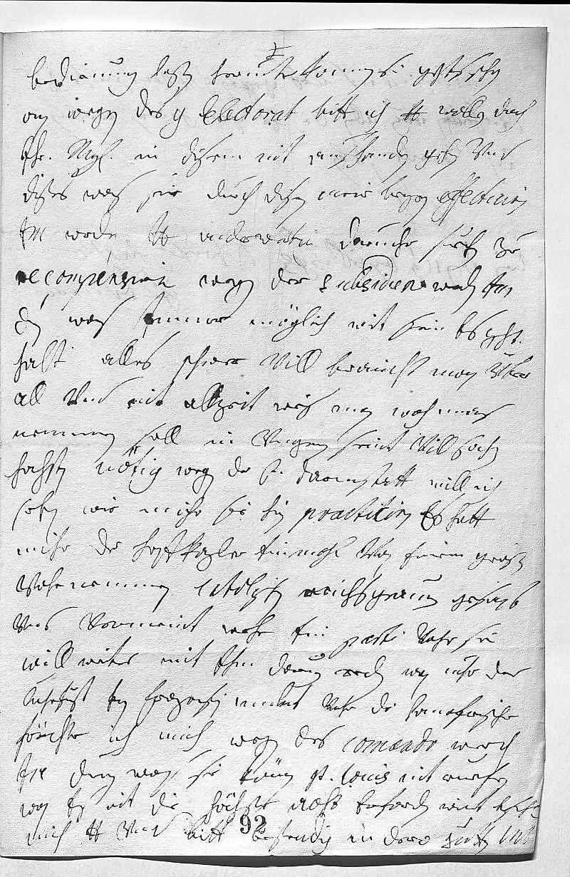 0034bedienung laßen herunter kommen, so gehts schon 0035an. Wegen des 9 electorat bitt ich, dero Liebden wollen doch 0036ihr Mayestät in disem nit aushanden gehen vnd 0037dises, was sie durch disen curir begern, effectuirn. 0038Ihr Mayestät werden dero Lieben anderweitig daruohr suechen zu 0039recompensirn. Wegen der subsidien werden ihr Mayestät 0040duen, was immer möglich wirt sein. Es geht 0041halt alles schwer, vill braucht man über 0042all, vnd nit allzeit weis man, woh mans 0043nemmen soll. In Vngern seint vill sachen 0044hochsten nötig. Wegen der Prinzessin Darmstatt will ich 0045sehen, wie mihr sie hin practicirn, es hatt 0046mihr der Hoffkanzler einmahl von einem großen 0047vohrnemmen catolischen reichsgrauen gesagt 0048vnd vermeint, wehr ein parti vohr sie. 0049Will weiter mit ihm daruon reden, wan nuhr der 0050Cuhrfürst kein franzosin nimbt. Vohr die hanoferische 0051förchte ich mich. Wegen des comando werden 0052ihr Mayestät duen, was sie können, Prinz Louis nit ruefen, 0053wan es nit die höchste noht erfordern wirt. Befehle 0054mich dero Liebden vnd bitt, bestendig in dero gutten int-