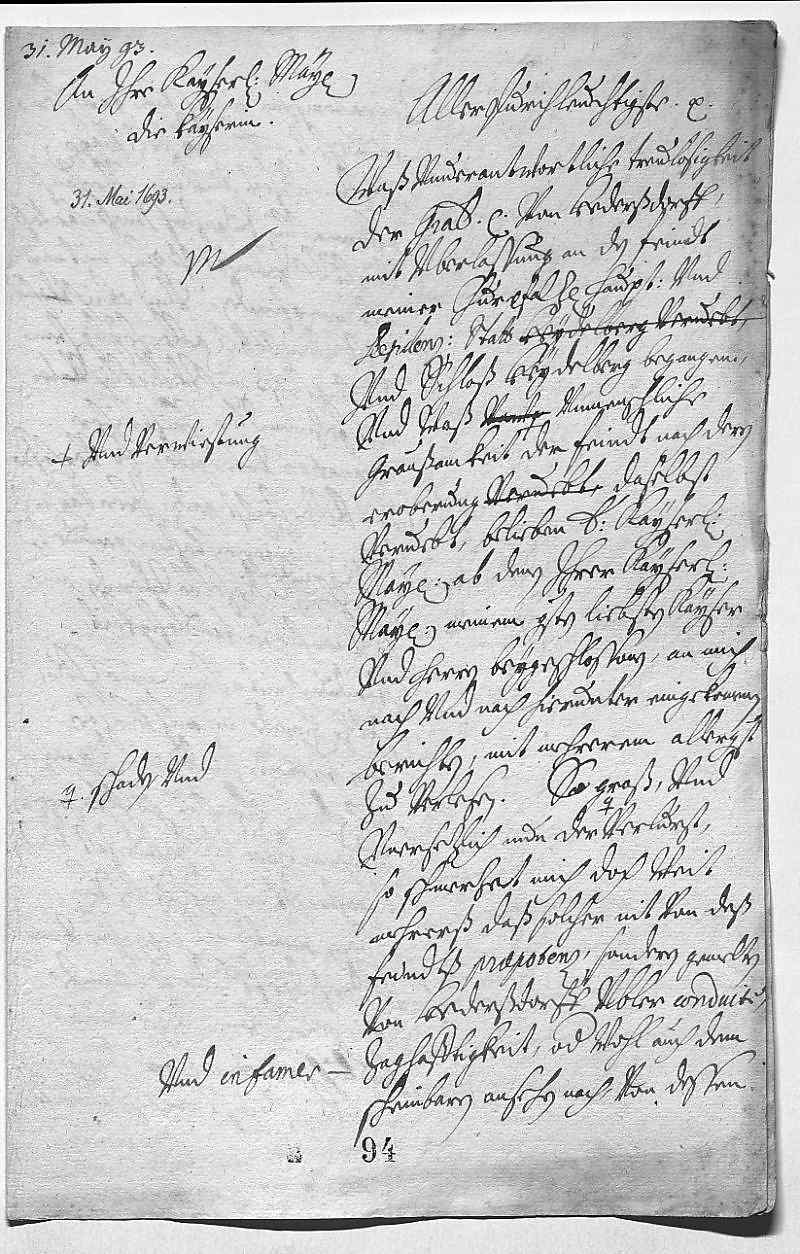 Johann Wilhelm von Pfalz-Neuburg an Eleonora Magdalena von Pfalz-Neuburg, Düsseldorf am 1693.05.31