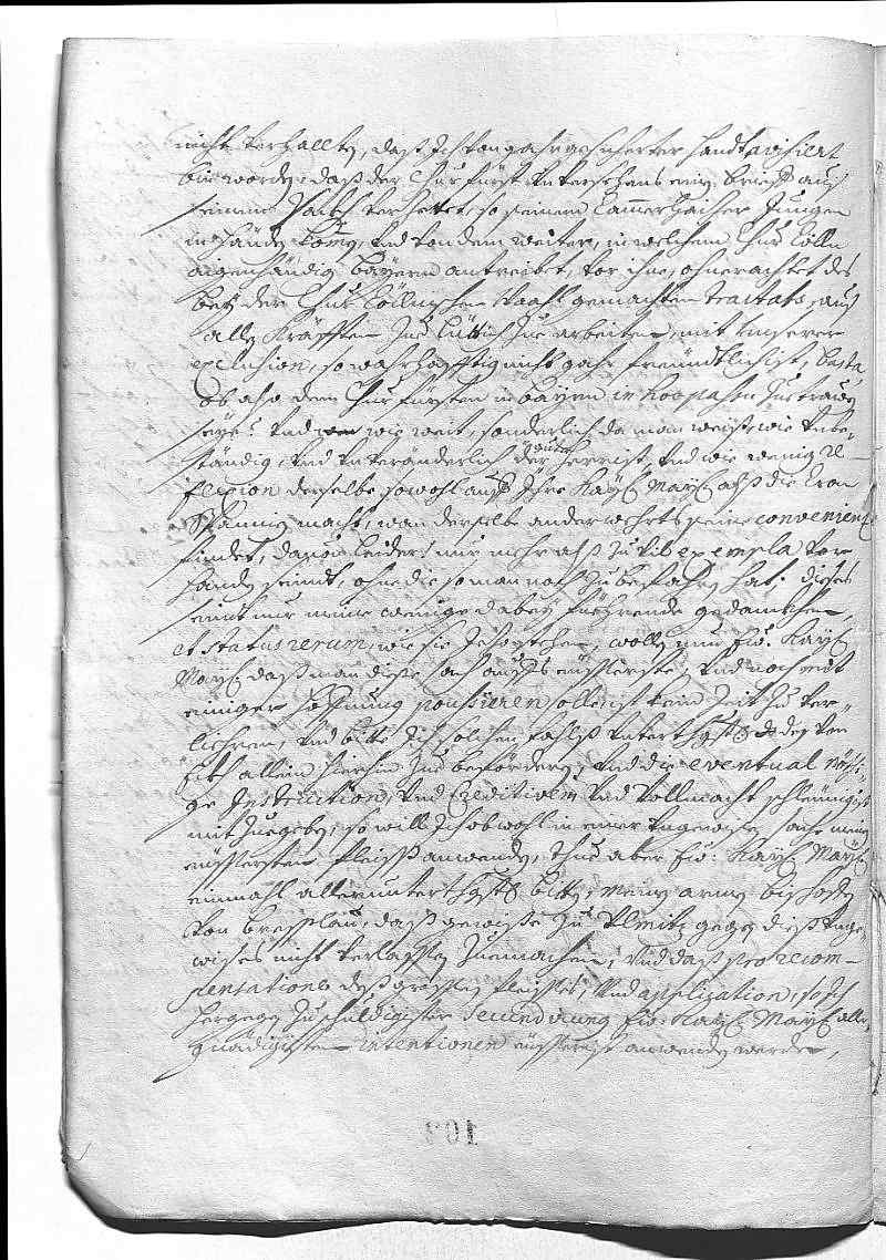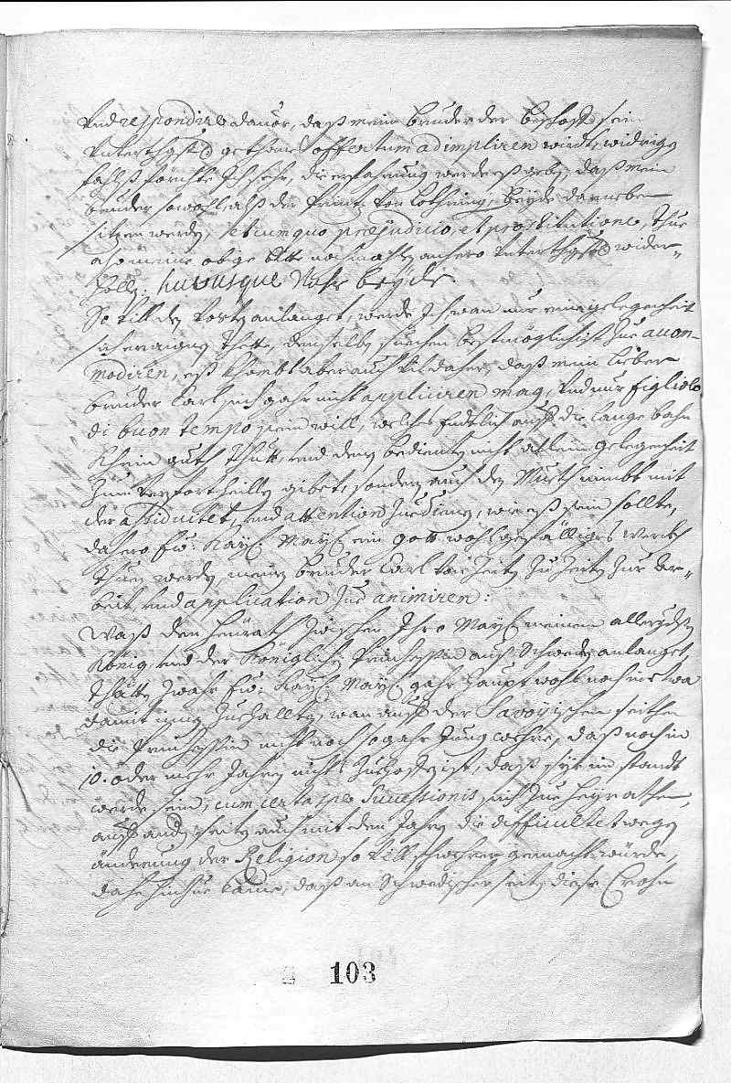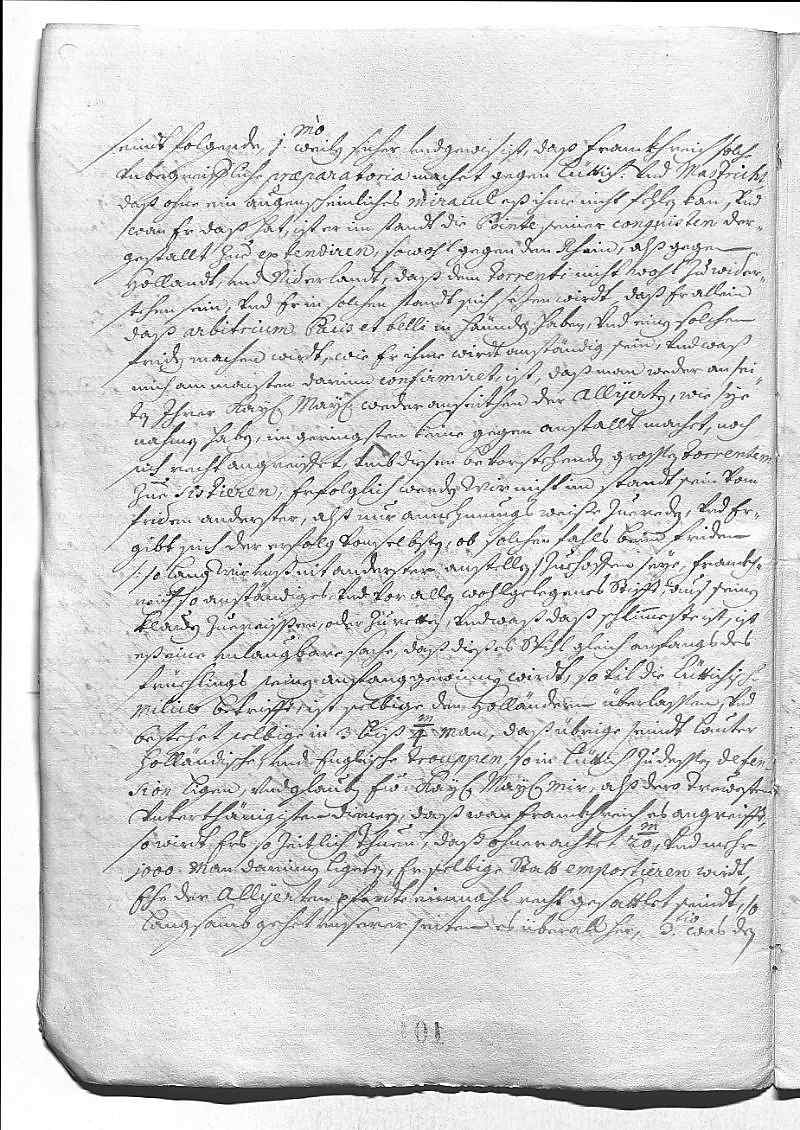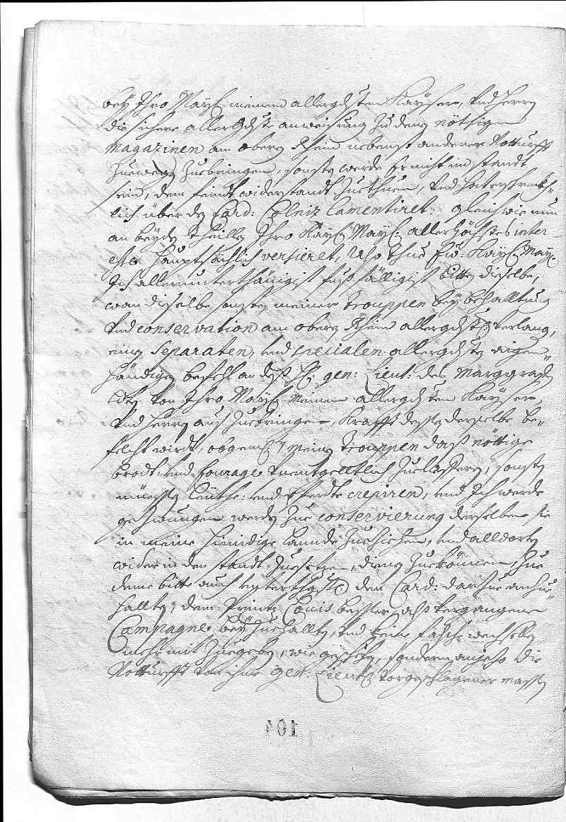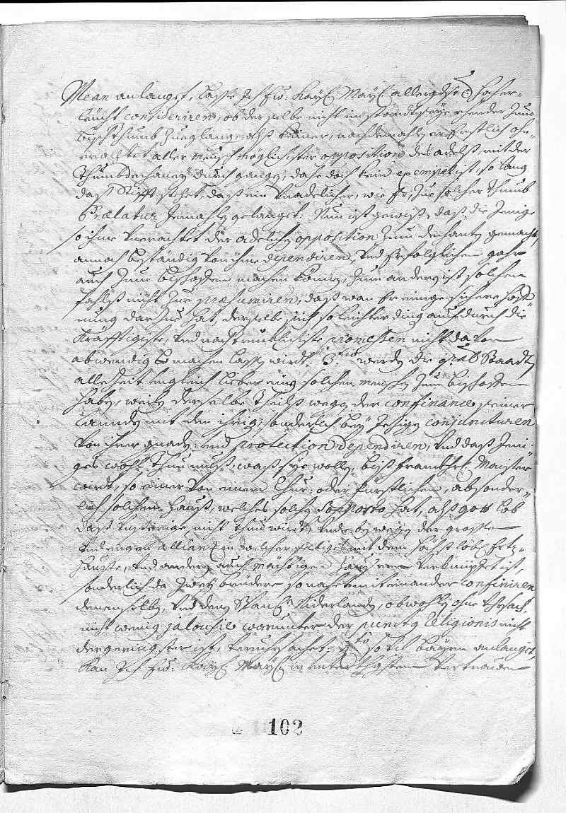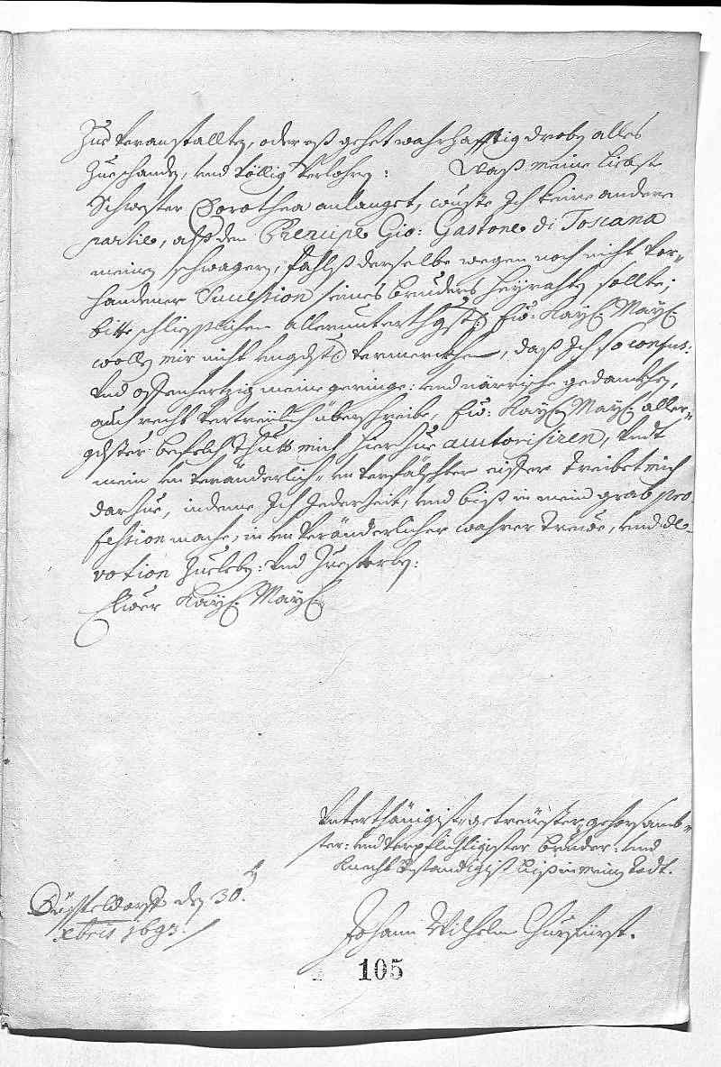 Wäre in der „odiosen Materie“ durchaus zufrieden, wenn es beim Status quo bliebe; vielleicht ist aber doch etwas über den Aufenthaltsort des D. (Doktor Schweizer) bekannt geworden. Schlägt vor zu versuchen, diesen zum Eintritt in ein Kloster zu bewegen; er hat bereits vor dem Tod seiner Frau gegenüber Bruder Ludwig Anton erwähnt, darüber nachzudenken. – Wenn kein Wunder geschieht, wird Lüttich im Frühjahr von den Franzosen erobert, und da weder der Kaiser noch die Alliierten sich auf den bevorstehenden Ansturm vorbereiten, wird auch bei den Friedensverhandlungen kein Grund für Frankreich bestehen, auf das Bistum wieder zu verzichten. Hält es nach wie vor für unwahrscheinlich, dass Bruder Franz Ludwig oder Bruder Ludwig Anton dort zum Bischof gewählt würden, wogegen der Mean von seinen Anhängern stark unterstützt wird und auch den Niederlanden lieber wäre. Hat aus sicherer Quelle, dass der Erzbischof von Köln den bayerischen Kurfürsten gebeten hat, ihn in Lüttich gegen Pfalz-Neuburg zu unterstützen. Wenn der Kaiser es aber trotzdem versuchen möchte, ist Eile geboten und es sollte Eckh statt des als intrigant bekannten Imbsen geschickt werden. – Bittet, dass Bruder Franz Ludwig deshalb nicht auf das Bistum Olmütz verzichten muss; garantiert, dass dieser sein Angebot, (später zu Gunsten des Herzogs von Lothringen zurückzutreten) einhalten wird. – Würde den Vogt gern unterbringen, wenn es eine Gelegenheit gäbe; leider arbeitet Bruder Karl (Philipp) nicht gern, und das hält auch die Bedienten davon ab sich anzustrengen. – Eine Heirat des römisch-deutschen Königs Joseph I. mit der schwedischen Prinzessin würde sehr dem gemeinen Interesse dienen, während die savoyische noch sehr lange nicht alt genug sein wird und Savoyen derzeit ohnehin kaum die Seiten wechseln kann. – Es liegt in EMTs Interesse, dass der nächste Hofkanzler von ihr abhängig ist, aus Gründen, die sein Obristkämmerer ihr vortragen wird. Sieht EMT und den Kaiser als eine Person an, und die Entscheidung liegt bei ihnen beiden. – Stimmt der Priesterweihe des (Hoch- und) Deutschmeisters (Bruder Ludwig Anton) zu, falls dieser den Bischof von Breslau (Bruder Franz Ludwig) überredet, im Notfall zu heiraten. – Bittet, den Domherrn Schallenberg nicht mehr zum armen Bischof von Augsburg (Bruder Alexander Sigismund) zu lassen, der sonst ganz von dem gottlosen Menschen verführt wird. – Dankt für den kaiserlichen Befehl, dass JWs Truppen mit Brot und Pferdefutter versorgt werden sollen; Markgraf Louis (von Baden) hat jedoch nichts erhalten und bittet dringend um eine direkt an ihn adressierte Anweisung. – Für Schwester Dorothea fällt JW nur sein Schwager, Prinz Gian Gastone von Toskana, als möglicher Heiratskandidat ein.