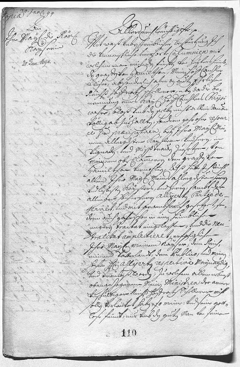 Johann Wilhelm von Pfalz-Neuburg an Eleonora Magdalena von Pfalz-Neuburg, Düsseldorf am 1694.01.20