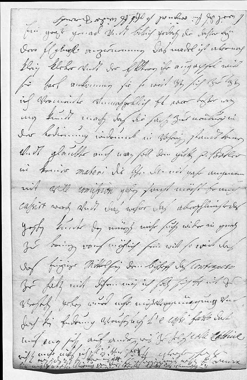 0013ablaße, dan einmahl sein ihr Mayestät, mein Keiser, vndt 0014ich mit der Königin impegnirt vndt weis, das dero Liebden 0015selbsten nit verlangen werden, das mihr vnser ver- 0016schprechen vndt gegebenes wort gegen der Königin 0017brechen solten, das mihr doch einem ieden priuaten 0018allezeit heilich halten wurden, vndt mihr gottlob noch 0019niemandt, weder groß noch klein, nachsagen wirt 0020können, das ich iemahlen etwas verschprochen vnd nit 0021gehalten, so wolt nit gern mit der liebsten Königin 0022das erste brechen. Es ist freilich wahr, das meine 0023brüder fremden vohrzuezien, aber ist er mein bruder, 0024so ist sie meines Keisers fraw schwester, die ich nit 0025mich vnterstehen werde, meinen brüdern zue posponiren. 0026Dero Liebden nemmen mihr nit übel, das ich so offenherzich 0027schreibe, die lieb, so sie mihr allezeit erwißen, macht, 0028das ich auf selbige mich verlaße, das sie mihr so balt 0029niks werden übel nemmen in ansehung der großen lieb, so 0030ich gegen dero Liebden drage. Wegen der odiosen sach steht halt zue 0031probirn, obs mit dem geistligen standt angeht, woh