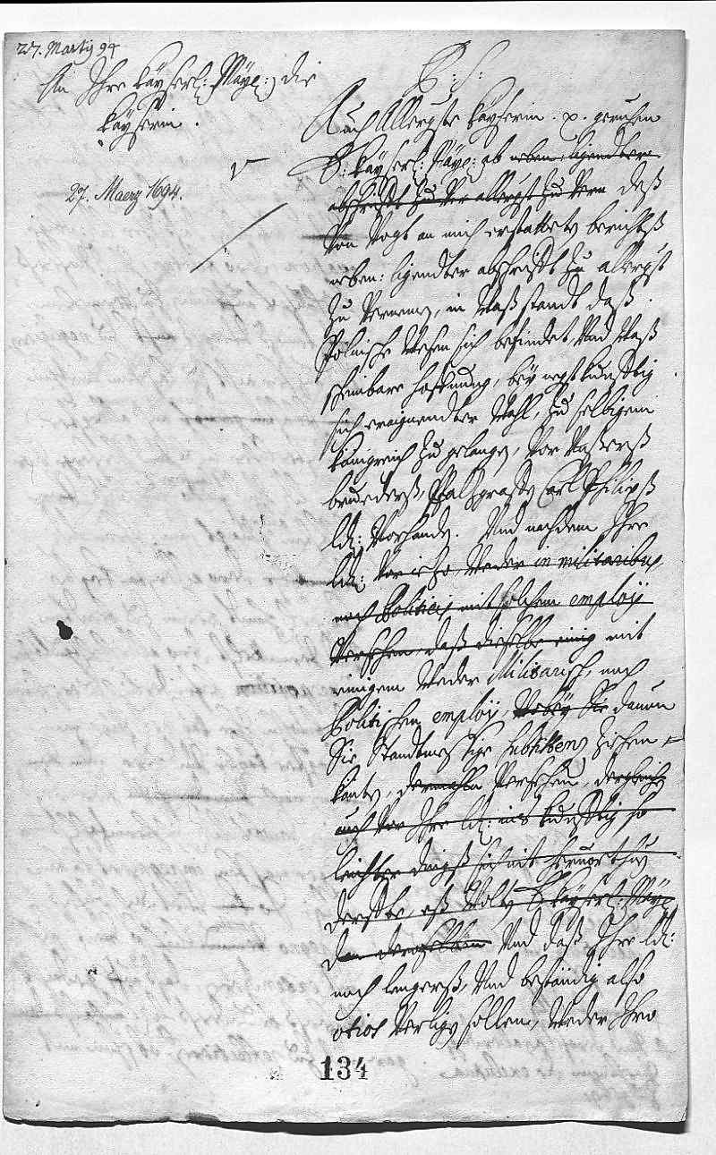Johann Wilhelm von Pfalz-Neuburg an Eleonora Magdalena von Pfalz-Neuburg, Düsseldorf am 1694.03.27