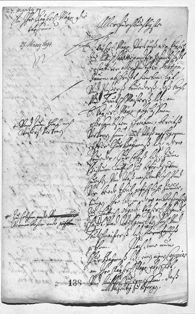 Johann Wilhelm von Pfalz-Neuburg an Eleonora Magdalena von Pfalz-Neuburg, Düsseldorf am 1694.03.27