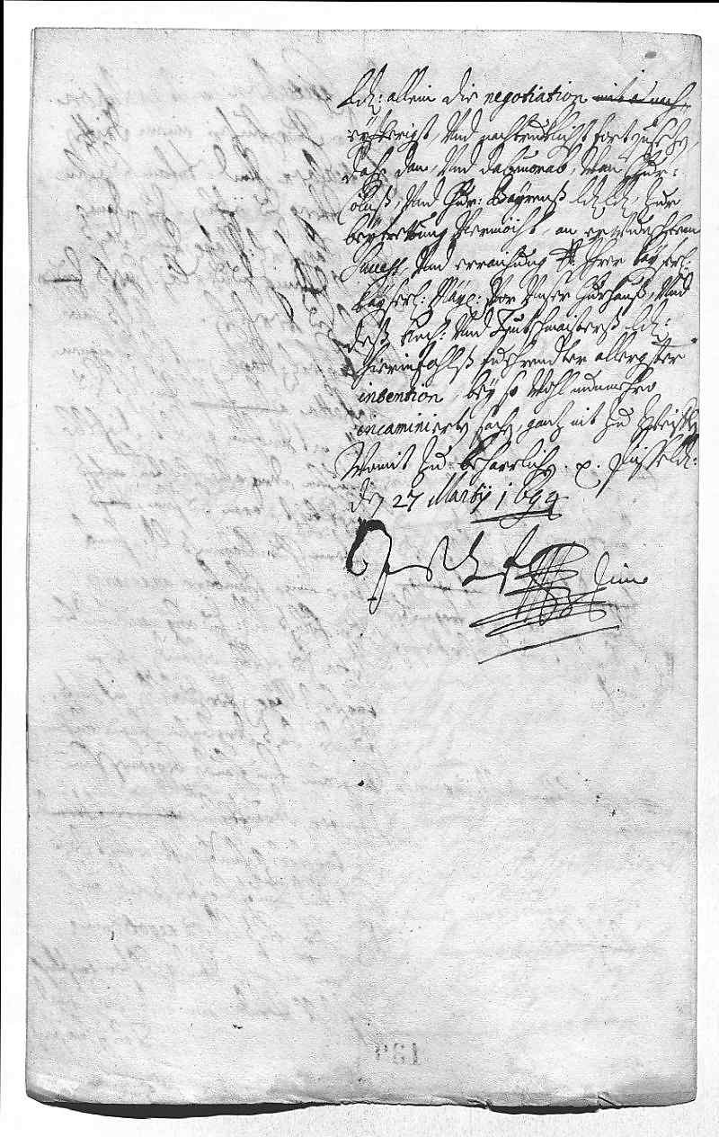 EMT und der Kaiser werden aus der Relation der kaiserlichen Gesandtschaft und dem Brief des (Hoch- und) Deutschmeisters (Bruder Ludwig Anton) an den Kaiser über die Vorgänge in Lüttich informiert sein. Da Kurbayern nun einen Kurier an den Kaiser geschickt hat, möchte JW mit dieser Stafette warnen: Der Kaiser möge keinen falschen Behauptungen glauben, dass Kurköln ohnehin chancenlos sei, und nicht auf Vorschläge eingehen, seine Gesandten für JWs Haus und Kurköln gleichzeitig verhandeln zu lassen, um die Wahl eines Dritten zu verhindern.