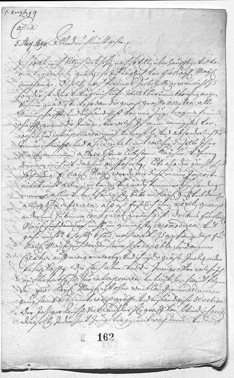 Bittet für die Frau des Reichsvizekanzlers Graf Windischgrätz um ständigen Zutritt zu EMTs Frauenzimmer, da diese ein solches Privileg auch bei der verwitweten Kaiserin (Eleonore Gonzaga-Nevers) hatte und eine vertraute Freundin von JWs herzliebster Erzherzogin (Maria Anna Josepha, JWs verstorbene erste Frau) war.