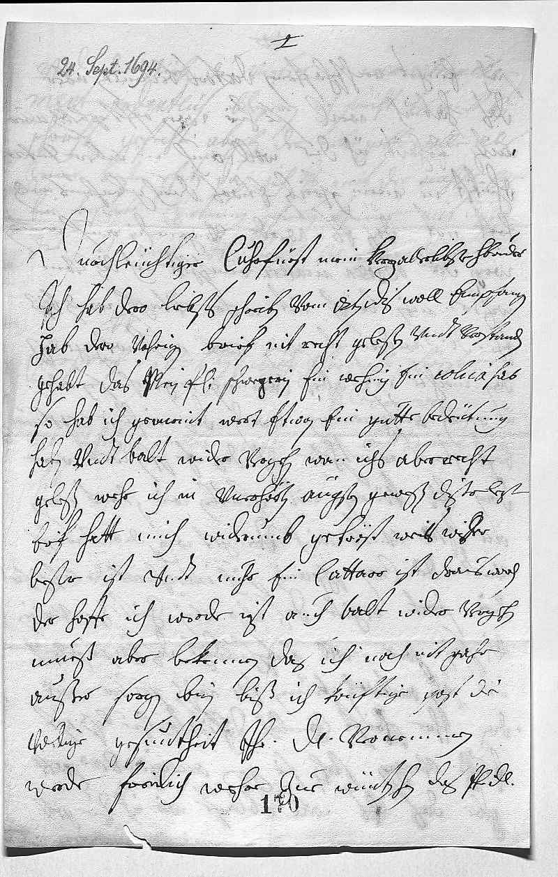 0035vnd die türken duen vnsere in iren retranche- 0036ment ordentlich belegeren, ich förcht, es wirt ein 0037scharfs gefecht abgeben. Der liebe gott wolle alls 0038zum besten schiken, das ich dero Liebden mit der nechste post 0039ein beßere zeitung schreiben könne. Mit disen 0040due ich mich dero Liebden befehlen vndt werde sterben 0041dero Liebden 0042getrewste schwester 0043Eleonora 0044Eberstorf den 27ten septembris 16940045Hab vohrigs mahl vergeßen dise brif zuerukh zu 0046schiken.