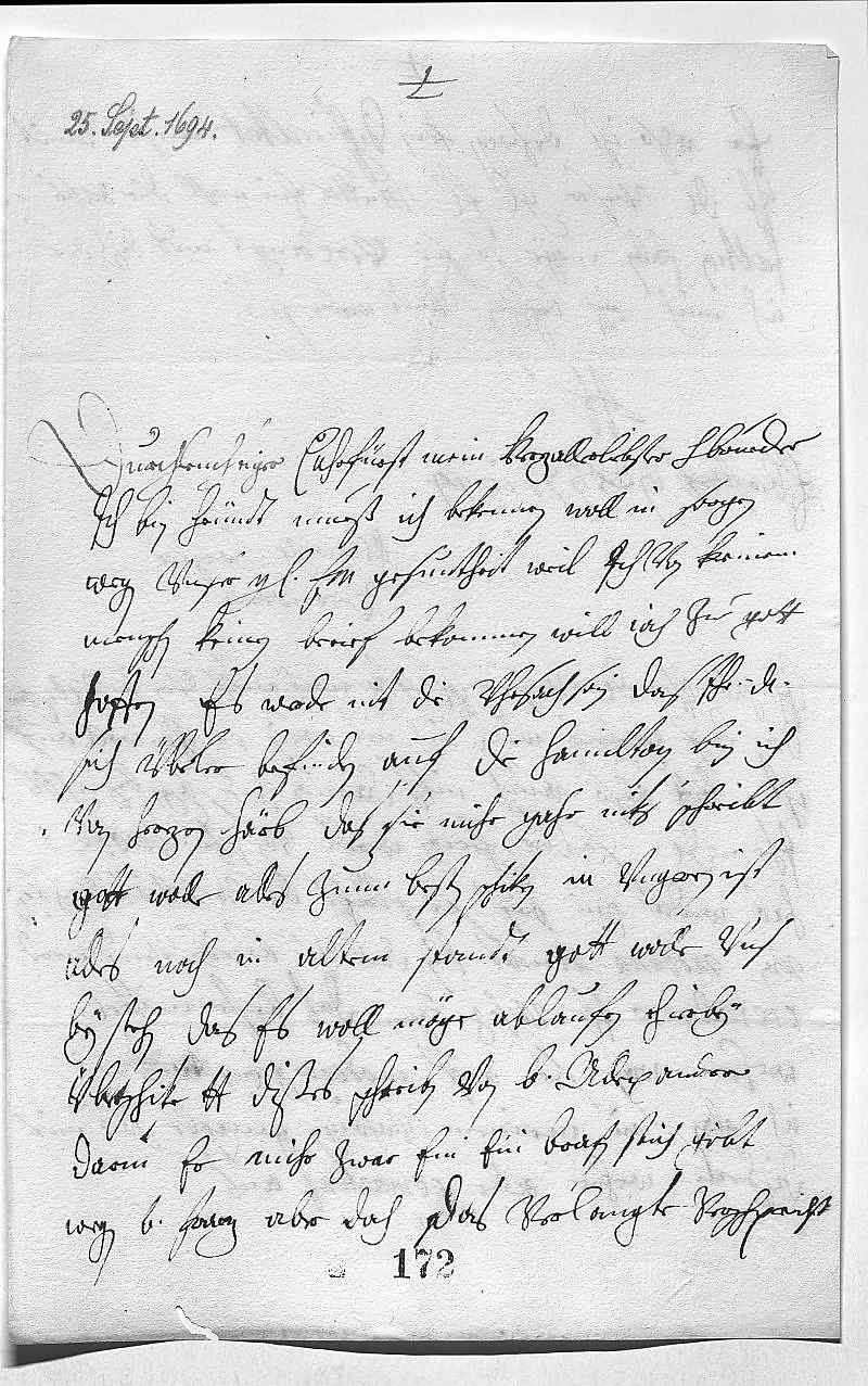 0001Durchleüchtiger Cuhrfürst, mein herzallerliebster herr brueder 0002Ich bin heündt, mueß ich bekennen, woll in sorgen 0003wegen vnser geliebsten fraw mutter gesuntheit, weil ich von keinem 0004menschen keinen berief bekommen, will iah zue gott 0005hoffen, es werde nit die vhrsach sein, das ihr Durchlaucht 0006sich übeler befinden. Auf die Hamilton bin ich 0007von herzen härb, das sie mihr gahr niks schreibt, 0008gott wolle alles zum besten schiken. In Vngeren ist 0009alles noch in altem standt, gott wolle vns 0010beystehn, das es woll möge ablaufen. Hierbey 0011überschike dero Liebden dißes schreiben von bruder Alexander, 0012darin er mihr zwar ein ein brafen stich gibt 0013wegen bruder Franz, aber doch das verlangte verschpricht,
