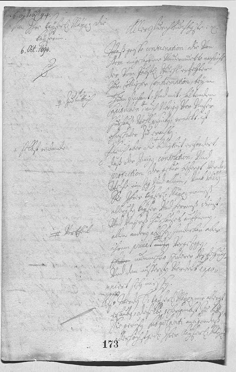 Johann Wilhelm von Pfalz-Neuburg an Eleonora Magdalena von Pfalz-Neuburg, Bensberg am 1694.10.06