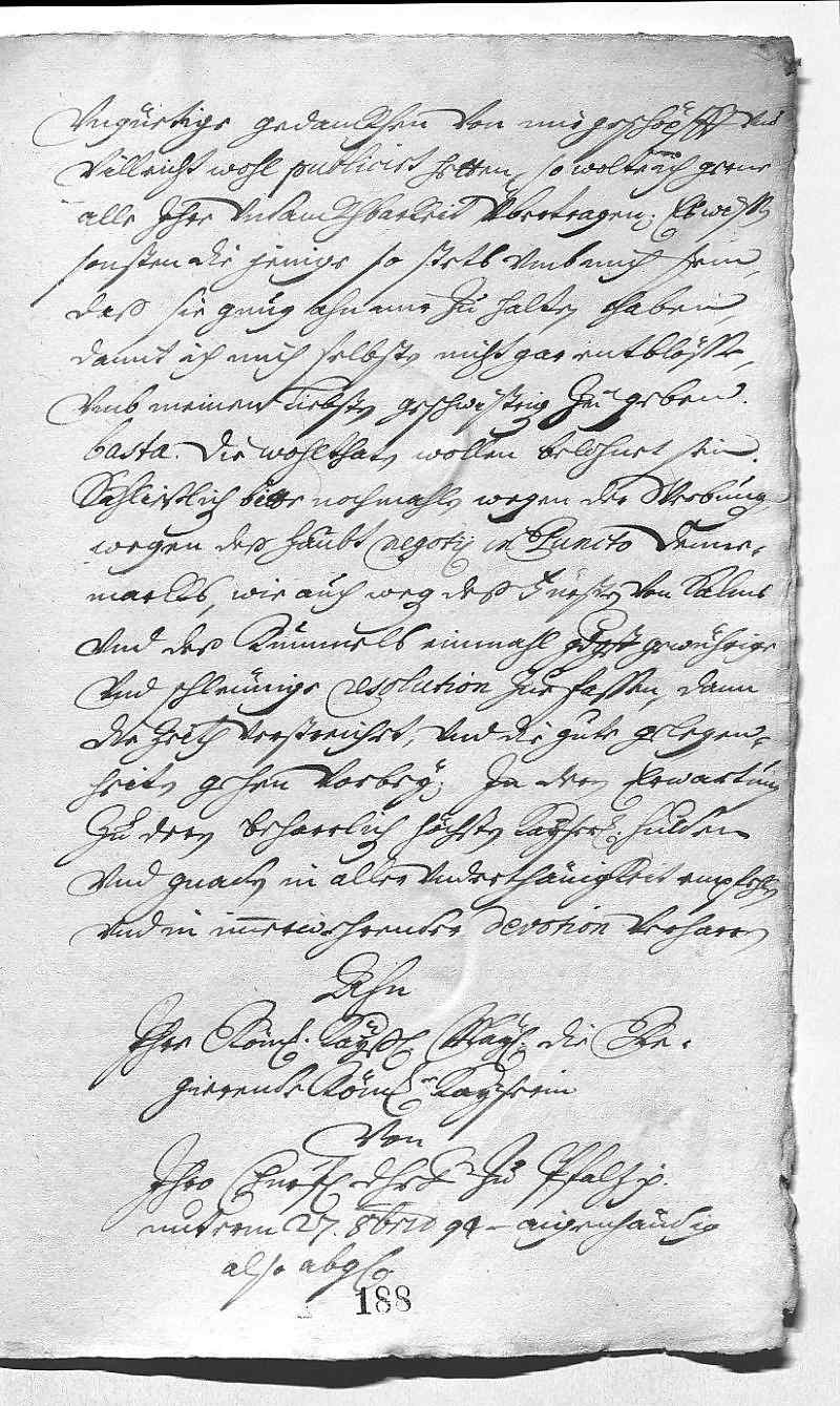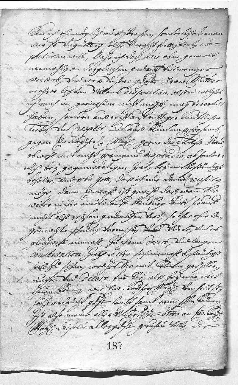 Hofft, dass seine Briefe angekommen sind. – Bemüht sich EMTs Wunsch gemäß, die Mutter dazu zu überreden, dass sie dauerhaft bei ihm bleibt. Nachdem Bruder Karl (Philipp) ihr von der Schwangerschaft seiner Frau geschrieben hatte, wollte sie früher abreisen, wird nun aber doch wie zuvor vereinbart bis zum Ende der Fastenzeit bleiben. Die Brüder haben sich von bösen Leuten in den Kopf setzen lassen, dass JW die Mutter dazu bringen würde, ihr Testament zu seinen Gunsten zu ändern, falls sie bei ihm bleibt. JW würde Derartiges nie in den Sinn kommen und die Verdächtigungen schmerzen ihn, nachdem er so viel für die Wahlen und Eheschließungen seiner Geschwister getan hat. – Bittet nochmals um baldige Entscheidung wegen der Truppenwerbung, wegen Dänemark und wegen des Fürsten Salm und des Rummel .