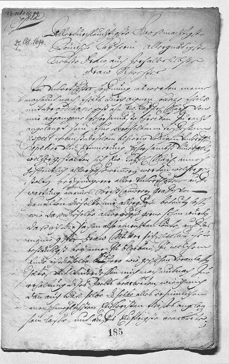 Johann Wilhelm von Pfalz-Neuburg an Eleonora Magdalena von Pfalz-Neuburg, o.O. am 1694.10.27