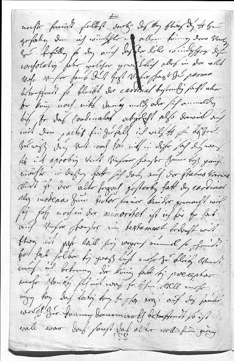 0108will ich gern schreiben, daß siehilft zue vnser intention, vndt 0109ich bins versichert, das sies duen wirt, wan ich nuhr 0110ein mahl zeit hett zue schreiben. Ich wolt, dero Liebden seheten, wie 0111mihr die zeit so kurz zusammen geht, das dero Liebden mich 0112auch deswegen nit werden übel nemmen, wan bisweilen 0113wehnich oder gahr nit schreib. Disen brif hab recht zue 0114sammen stehlen müeßen, hab zwar gutt im sinn, mich 0115konftigs iahr zu beßern, so vill ich kan. Vohr die 0116Bergerin aber weis ich woll keinen man zue finden, 0117dan dahir sie niemant kendt, vndt wüst auch nit, 0118was einem vohr ein conueniens miht ihr machen könte. 0119Jezt falt mihr bey, wan der Deütschmeister das regiment 0120bekombt, wirt er etwan einen dort accomodirn können, 0121der sie nemmen möchte. Wan der Golstein hinunter 0122kombt, kan dero Liebden mit ihm draus reden. Sonst dun dero Liebden 0123aufs beste vndt höst erleücht, das die die Margret 0124vndt alles, was bey ihr Durchlaucht gilt, cultiuirn, mit disen 0125werden sie es woll erhalten können. Jezt bruder Allexander 0126betreffendt, so ists woll so, wie dero Liebden gesacht, dan ihr Mayestät haben 0127zue Eichstett sondiren laßen, so ist zwar der Bischoff 0128höchst willich dazue gewest, die capittulares aber haben0129fein clar gesacht, so wolten lieber ein ieden parti- 0130cularn haben als vnsern bruedern wegen des vblen 0131tractaments, das alle leiden müsen von dem