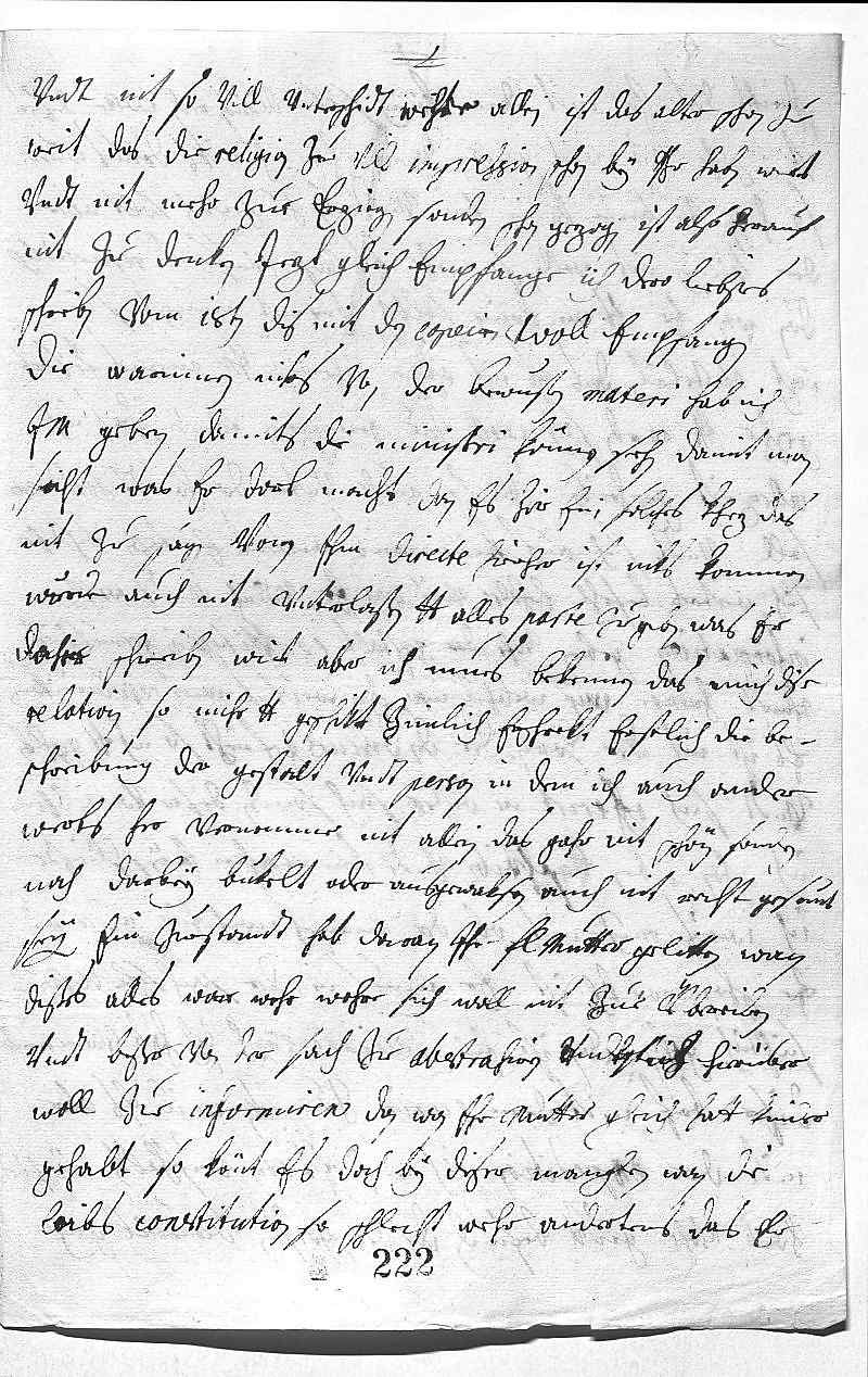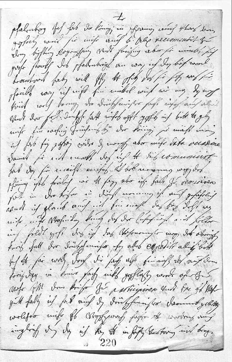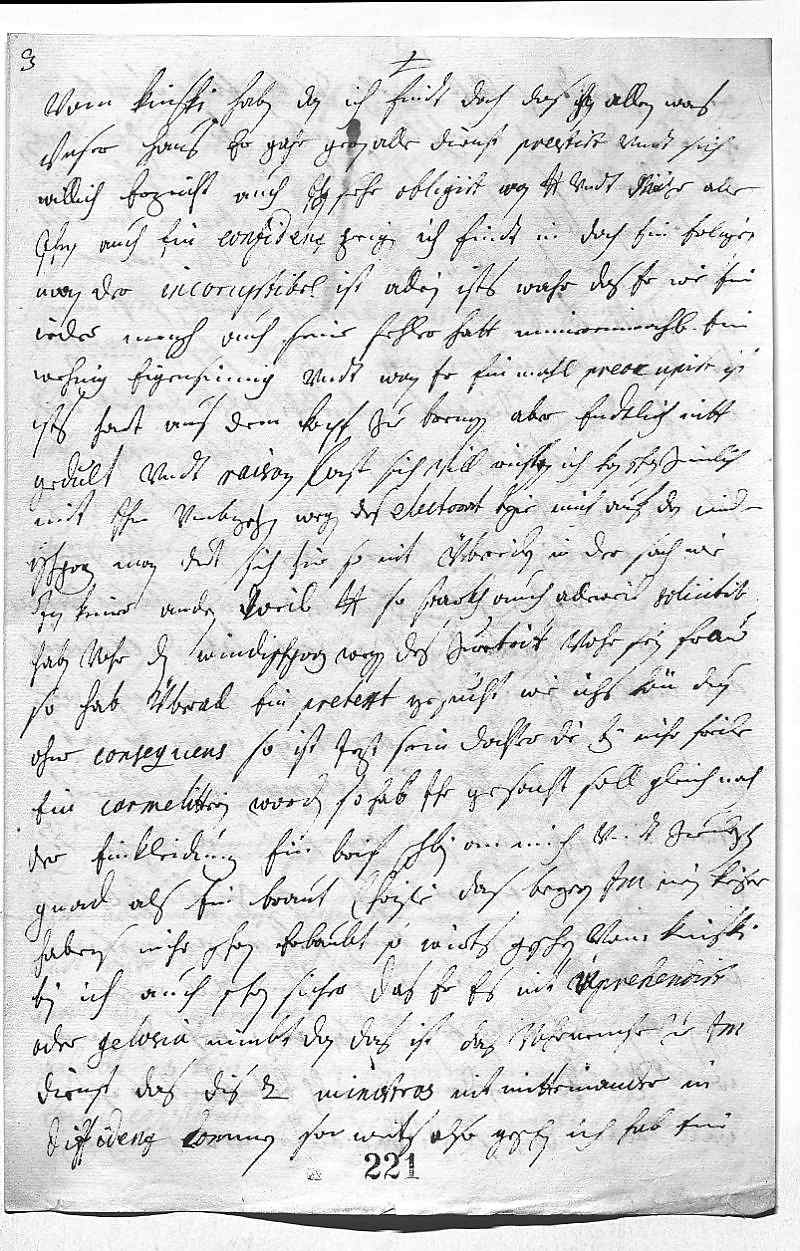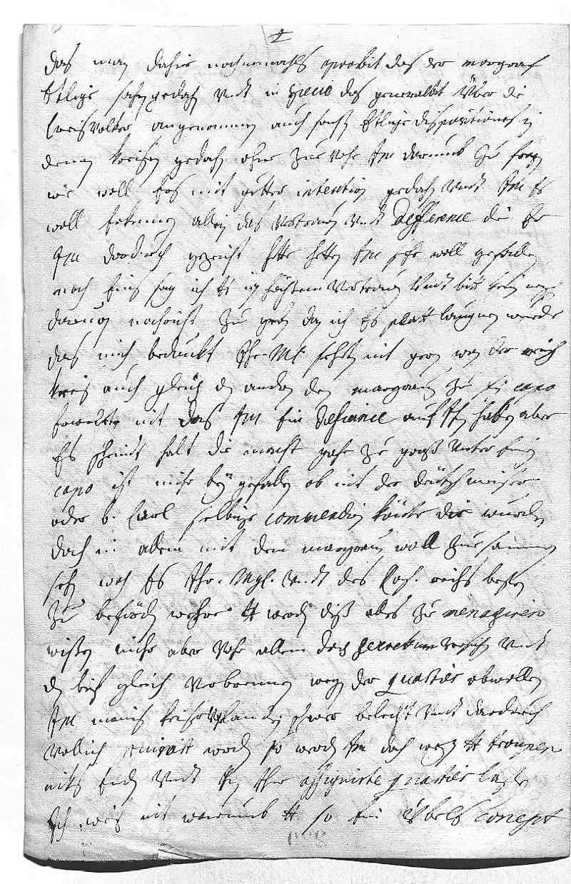 0226vndt nit so vill vnterschidt wehre, allein ist das alter schon zue 0227weit, das die religion zu vill impression schon bey ihr haben wirt 0228vndt nit mehr zue erziegen, sondern schon gezogen ist, also herauf 0229nit zu denken. Jezt gleich empfange ich dero liebstes 0230schreiben vom 18ten dis mit den copeien woll empfangen. 0231Die, warinnen niks von der bewusten materi, hab ich 0232ihr Mayestät geben, damits die ministri können sehn, damit man 0233sicht, was er dort macht, dan es hier ein solches khez, das 0234nit zue sagen. Vonn ihm directe hierher ist niks kommen, 0235wurde auch nit vnterlaßen, dero Liebden alles parte zue geben, was er 0236dahier schreiben wirt, aber ich mues bekennen, das mich dise 0237relation, so mihr dero Liebden geschikt, zimlich erschrekt. Erstlich die be- 0238schreibung der gestalt vndt person, in dem ich auch ander- 0239werts her vernemme, nit allein, das gahr nit schön, sondern 0240noch darbey bukelt oder ausgewaksen, auch nit recht gesunt 0241sey, sondern ein zuestandt hab, daran ihr fraw mutter schon gelitten. Wan 0242dißes alles war wehr, wehre sich woll nit zue übereilen 0243vndt beßer von der sach zue abstrahiren vndt gleich hierüber 0244woll zue informiren, dan wan ihr mutter gleich hatt kinder 0245gehabt, so könt es doch bey dieser manglen, wan die 0246laibs constitution so schlecht wehr. Andertens, das er