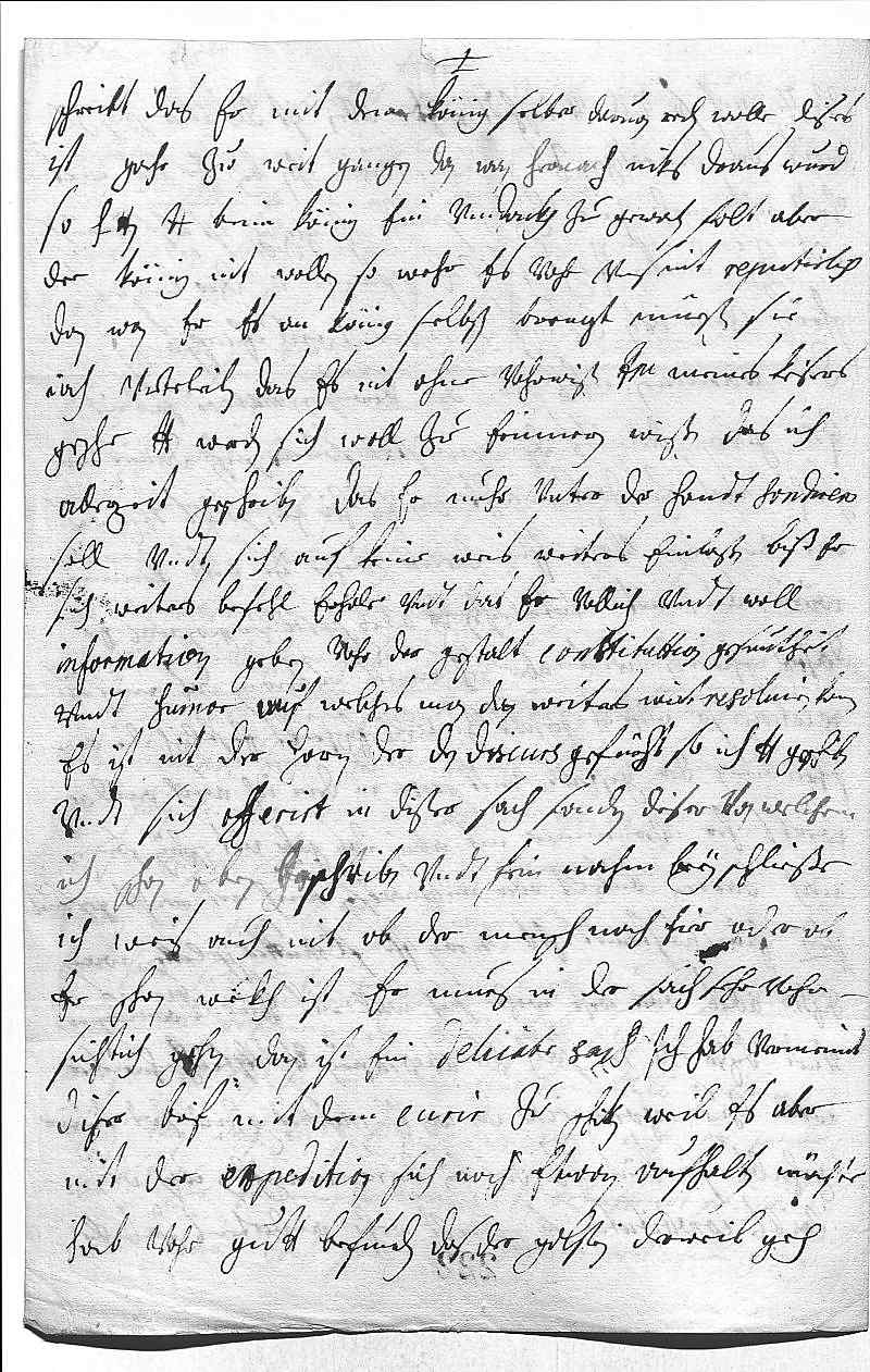 0247schreibt, das er mit dem König selber daruon reden wolle, dises 0248ist gahr zue weit gangen, dan wan hernach niks draus wurd, 0249so hetten dero Liebden beim König ein vndankh zu gewarten. Solt aber 0250der König nit wollen, so wehr es vohr vns nit reputirlich, 0251dan wan er es an König selbsten brengt, müeßen sie 0252iah vrteleilen, das es nit ohne vohrwiß ihr Mayestät, meines Keisers, 0253gesche. Dero Liebden werden sich woll zue erinnern wißen, das ich 0254allezeit geschriben, das er nuhr vnter der handt sondiren 0255soll vndt sich auf keine weis weiters einlaßen, biß er 0256sich weiters befehl erhole, vndt das er vollich vndt woll 0257information geben vohr der gestalt, constitution, gesuntheit 0258vndt humor, auf welches man dan weiters wirt resoluiren konnen. 0259Es ist nit der Horn, der den discurs gefürht, so ich dero Liebden geschriben, 0260vndt sich offerirt in dißer sach, sondern diser, von welchem 0261ich schon oben geschriben vndt sein nahm bey schließe. 0262Ich weis auch nit, ob der mensch noch hier oder ob 0263er schon wekh ist, er mues in der sach sehr vohr- 0264sichtich gehen, dan ist ein delicate sach. Ich hab vermeint, 0265diser brif mit dem curir zue schiken, weil es aber 0266mit der expedition sich noch etwan aufhalten möchte, 0267hab vohr gutt befunden, das der Golstein derweil geh
