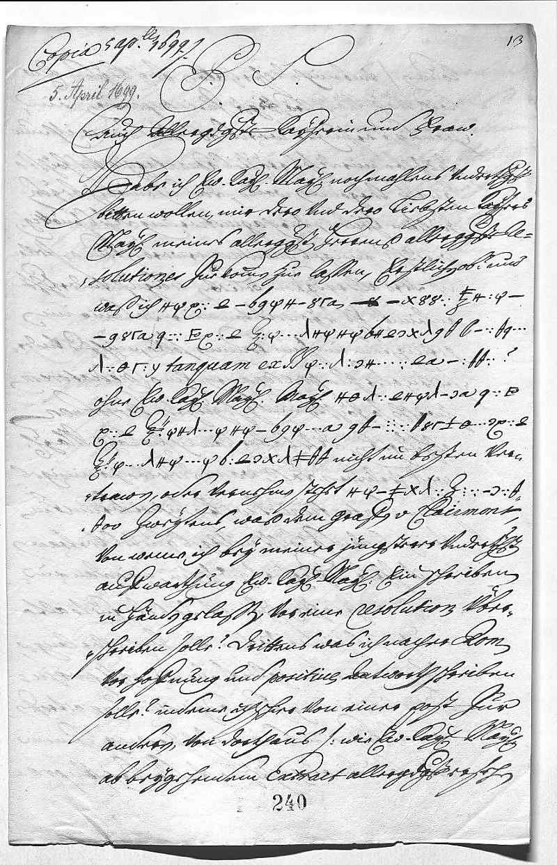 Johann Wilhelm von Pfalz-Neuburg an Eleonora Magdalena von Pfalz-Neuburg, Düsseldorf am 1699.04.05