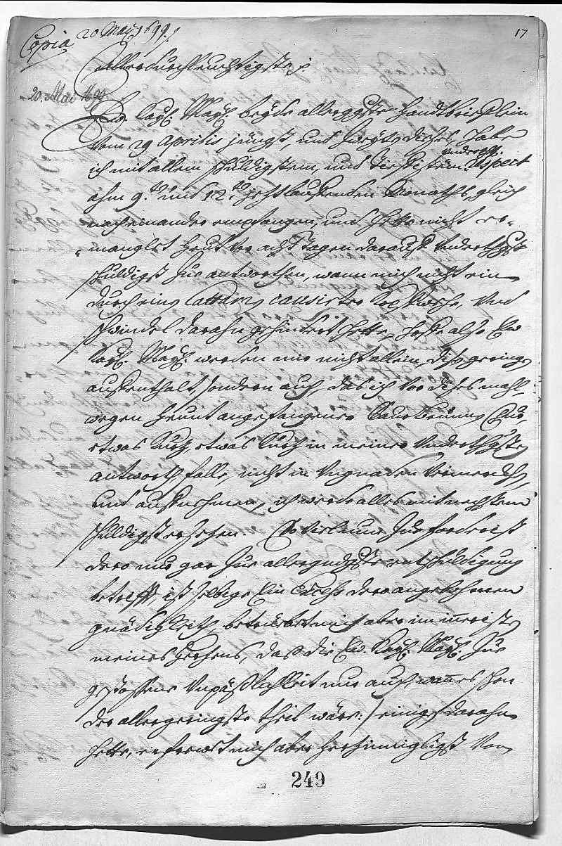 Entschuldigt sich, dass er EMTs letzte beiden Briefe wegen eines Katarrhs etwas verspätet beantwortet. – War bestürzt, über EMTs Erkrankung zu erfahren, dankt Gott für ihre Genesung und betet immer für ihre Gesundheit. – Dankt für EMTs Oster- und Geburtstagsglückwünsche. – Wird erst an die Versprechen von Prinz Jakob Sobieski glauben, wenn sie erfüllt sind; bittet um kaiserliche Protektion für die gänzlich mittellose Schwester Hedwig Elisabeth. – JW ist klar, dass er die Schwestern Maria Anna (Königin von Spanien) und Marie Sophie (Königin von Portugal) nicht versöhnen kann, solange Gräfin Berlepsch am spanischen Hof ist, schlägt aber vor, dass er in Portugal vorsichtig sondieren könnte (wegen der spanischen Thronfolge). – Dankt für den Rat, Schwester Maria Anna öfter zu schreiben; das tut er und hat ihr auch zwei Kaleschen samt Zugpferden und Wein geschickt. – Rät, für die Gräfin Berlepsch einen Mann zu finden, damit Schwester Maria Anna sich der spanischen „Nation“ gegenüber offener zeigt und damit fähig wird, nützliche Dienste zu leisten. – Möchte die 1400 Mann, die er für das Deutschmeister-Regiment gestellt hat, aus anderen Infanterieregimenten ersetzt bekommen. – Dankt dafür, dass die Gräfin Kaunitz Zutritt zum kaiserlichen Frauenzimmer erhalten hat. – Bittet um Gehaltsfortzahlung für seinen kranken Kapellmeister Don Sebastiano Moratelli und um Versorgung von zwei ehemaligen Kammerbediensteten seiner ersten Frau, der verstorbenen Erzherzogin Maria Josepha. – Dankt für die Einladung an den Kaiserhof, der er und seine Gemahlin gleich im Juli nachkommen wollen, spätestens aber im kommenden Jahr. – Gratuliert zu einer den Marquis de Villars betreffende Einigung. – Gratuliert zur Schwangerschaft der Königin Amalia Wilhelmina und hat veranlasst, dass in allen seinen Landen das in solchen Fällen übliche tägliche Gebet abgehalten wird. – Dankt dafür, dass der kaiserliche Botschafter in Rom dafür sorgt, dass der Botschafter des Großherzog von Toskana nun wie der venezianische und damit wie ein königlicher Gesandter behandelt werden soll. – Kann gut nachvollziehen, dass als kaiserlicher Auditor Rotae ein deutscher Untertan gesucht wird, seine Empfehlung war auch nur für den Fall, dass ein Italiener in Frage käme. – Wird dem Clairmont den kaiserlichen Befehl weiterleiten. – Bemüht sich um eine Allianz (vermutlich mit Portugal) und bezieht sich dazu auf seinen kürzlich dem Grafen Kaunitz geschickten Bericht. – Wird in der römischen Angelegenheit EMTs Anweisungen folgen. – Freut sich, dass das geräucherte Fleisch und das Brot etc. gut angekommen sind und wird bei jeder Post vom einen oder anderen mehr schicken. – Dankt für das Apfel- und Birnen-Rezept und die Rücksendung seines Psalters.