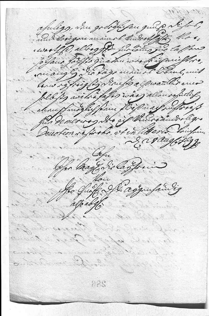Entschuldigt sich für sein langes Schweigen, das unter anderem durch seine Reise verursacht wurde und die Sorge, seine Untertanen vor der „gottlosen Wut“ der Franzosen zu schützen. – Freut sich, dass Prinz Jakob (Sobieski) mit seinen Brüdern geteilt hat; nun wird die Kunst sein, ihn zu hindern, das Kapital nach seiner Gewohnheit zu verschwenden. JW hatte schon immer einen schlechten Eindruck von ihnen und hofft, dass seine arme Schwester Liesel (Hedwig Elisabeth) nicht die Betrogene sein wird. – Dankt für das Vertrauen bezüglich der Verhandlung mit Portugal. – Fürchtet, dass es kein gutes Ende für die spanische Königin (Schwester Maria Anna) nehmen wird, weil sie so versessen auf die gottlose Gräfin Berlepsch ist. Es wird ihn aber trösten, wenn nur die Thronfolge des Erzhauses gesichert wird, denn wer sich nicht raten lässt, dem ist nicht zu helfen. – Der Holländer De Hoppe und der französische Gesandte Villars verhandeln in Wien heimliche Traktate; JW wurde durch Kurbrandenburg dazugeladen und erwartet EMTs Befehl, wie er sich verhalten soll. – Dankt für die Gewährung seiner Fürbitten für Don Sebastiano (Moratelli) und die Anna Liesel. – Dankt für die Namenstagswünsche. – Freut sich, dass EMT die Entsendung seines Beichtvaters Pottier gnädig aufgenommen hat. – Bittet nochmals um Protektion für den Grafen Clairmont. – Schlägt vor, dass der Kaiser ihm für die insgesamt 1835 Mann, die er ihm zu ersetzen schuldet, 50 rheinische Gulden pro Kopf anweisen lässt, denn er will nicht dem (Hoch- und) Deutschmeister (Bruder Franz Ludwig) sein Regiment nehmen. – Hofft, dass der Prinz Gian Gastone (von Toskana) zumindest mit Distinktion behandelt wird. – Dankt dafür, dass EMT ihn im Konflikt um Veldenz gegen Pfalz-Sulzbach und Pfalz-Birkenfeld unterstützt hat. – Hat erst jetzt erfahren, dass die Mutter und der Bischof von Augsburg (Bruder Alexander Sigismund) die Klostergründung ohne Belastung der Untertanen aus ihren eigenen Einkünften finanzieren können und stellt die Entscheidung daher EMT anheim. – Sendet eine Relation darüber, was er in Wien mit Bruder Karl (Philipp) über dessen künftige Verheiratung besprochen hat. – Hat dem Grafen Kaunitz seine Bedenken wegen des Statthalteramts in Neuburg mitgeteilt. – Rät angesichts der wohl bald bevorstehenden Auseinandersetzungen (um die spanische Erbfolge) zu einer Versöhnung mit dem Papst . Bietet an, sich um eine Abschiedsaudienz für Graf Martinitz und damit eine gesichtswahrende Lösung der Situation zu bemühen. – Für die Vogtin muss man wieder einen Mann suchen. – Hat die Frau von Winkelhausen zu der Kleinen (Elisabeth Augusta) getan. – Freut sich, dass die Geschenke gut angekommen sind. – Empfiehlt nochmals Graf Philipp von Sinzendorf und seinen Schwager, Graf Joseph von Paar , in dem in seinem letzten Kanzleischreiben genannten Anliegen.