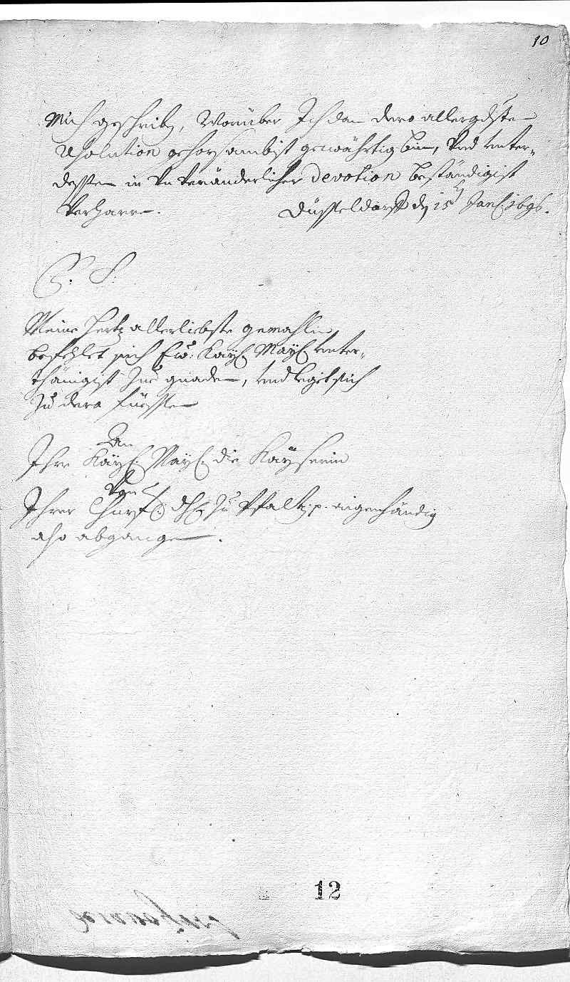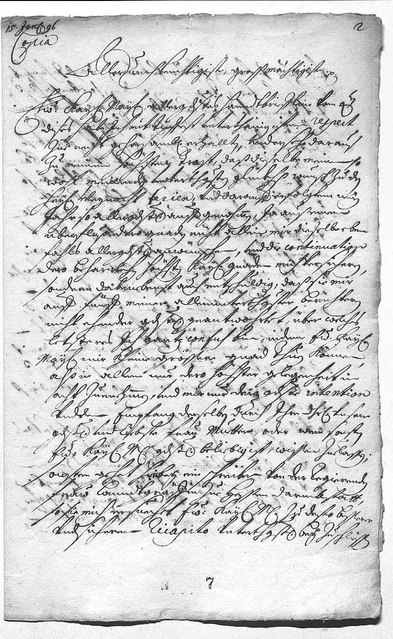 Johann Wilhelm von Pfalz-Neuburg an Eleonora Magdalena von Pfalz-Neuburg, Düsseldorf am 1696.01.15