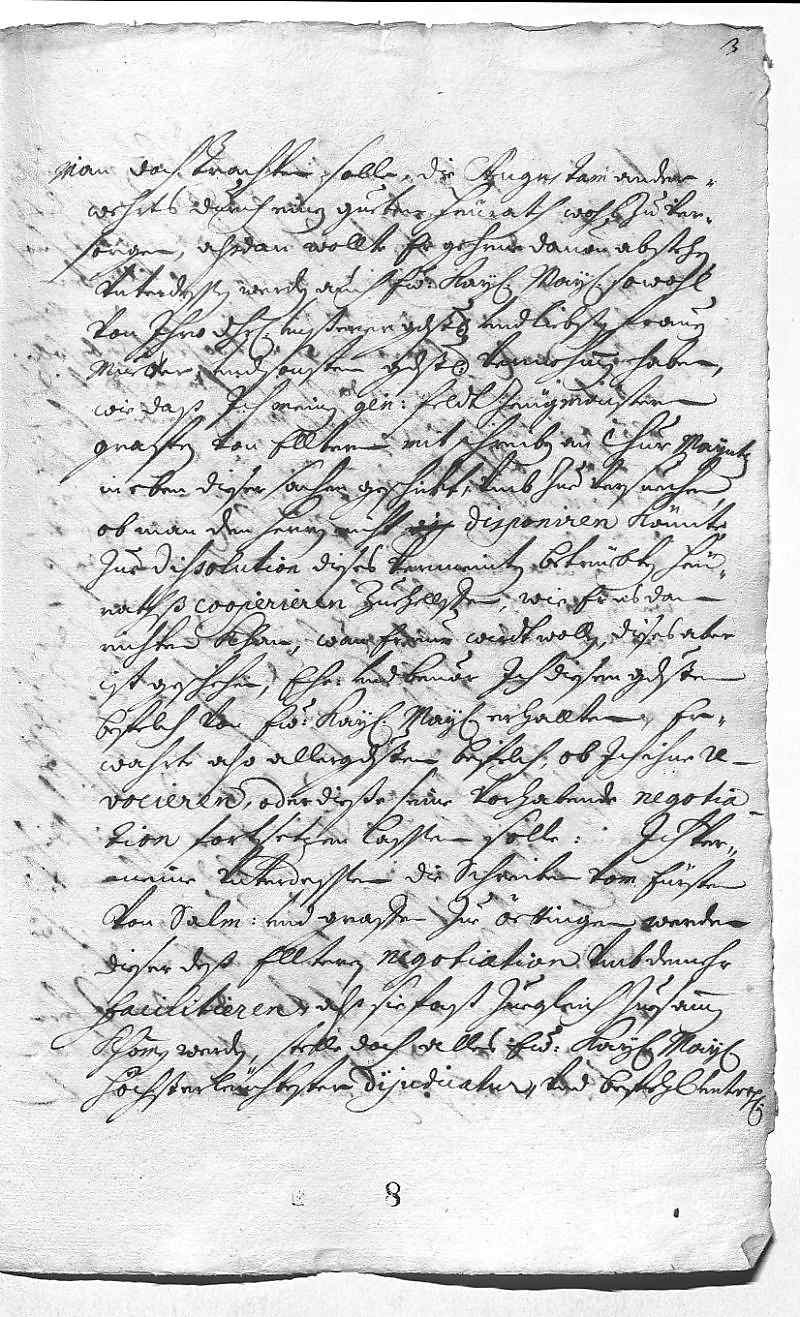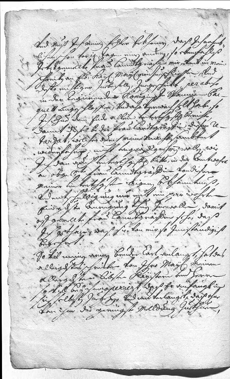 Dankt für EMTs Weihnachts- und Neujahrswünsche. – Sendet ein Schreiben der regierenden Landgräfin von Hessen-Darmstadt mit und hat vor zwei Wochen ein weiteres irrtümlich an die regierende spanische Königin (Schwester Maria Anna) geschickt. – Der Brief des Kaisers an Bruder Karl (Philipp) hat bewirkt, dass dieser einverstanden wäre, die Augusta (Gräfin von Hohenlohe) anderweitig gut zu verheiraten. Hat seinen Feldzeugmeister Graf Elter in dieser Angelegenheit nach Mainz geschickt und fragt, ob er ihn zurückrufen soll. Der Graf von Hohenlohe verhält sich impertinent, deshalb ist ein nachdrückliches Vorgehen nötig. – Kann den Doktor (Schweizer) nicht in Neapel unterbringen, weil er schon andere Anordnungen getroffen hat; ihn anderwärts zu verheiraten ist bisher auch nicht gelungen. Seit die Mutter weiß, dass sie ihn nicht sehen kann, hat sie das Interesse an einer Reise nach Neuburg verloren. – Wegen des Urbich hat EMT bestimmt Recht. – Bezieht sich hinsichtlich der Friedensverhandlungen mit Frankreich auf sein Schreiben an den Kaiser. Erwartet stündlich den Veyder und wird dann sofort den Wiser nach Wien schicken. – Warnt, dass Prinz Louis sich sehr für den Schallenberg einsetzen wird, wenn er an den Kaiserhof kommt. – Bedauert, dass Vetter Philipp EMT falsch über die von JW gewährte Apanage berichtet hat; JW hat es nur EMT und dem Kaiser zuliebe getan und ist zu nichts verpflichtet. – Sendet beiliegend, was der Herzog von Sachsen-Zeitz ihm geschrieben hat, und wartet auf eine Entscheidung des Kaisers dazu. – Legt Korrespondenz zwischen Veyder und d’Harcourt bei. Diese kann jederzeit abgestritten werden, da Veyder einen fremden Schreiber und d’Harcourts Chiffre verwendet und nicht mit seinem Namen unterschreibt.