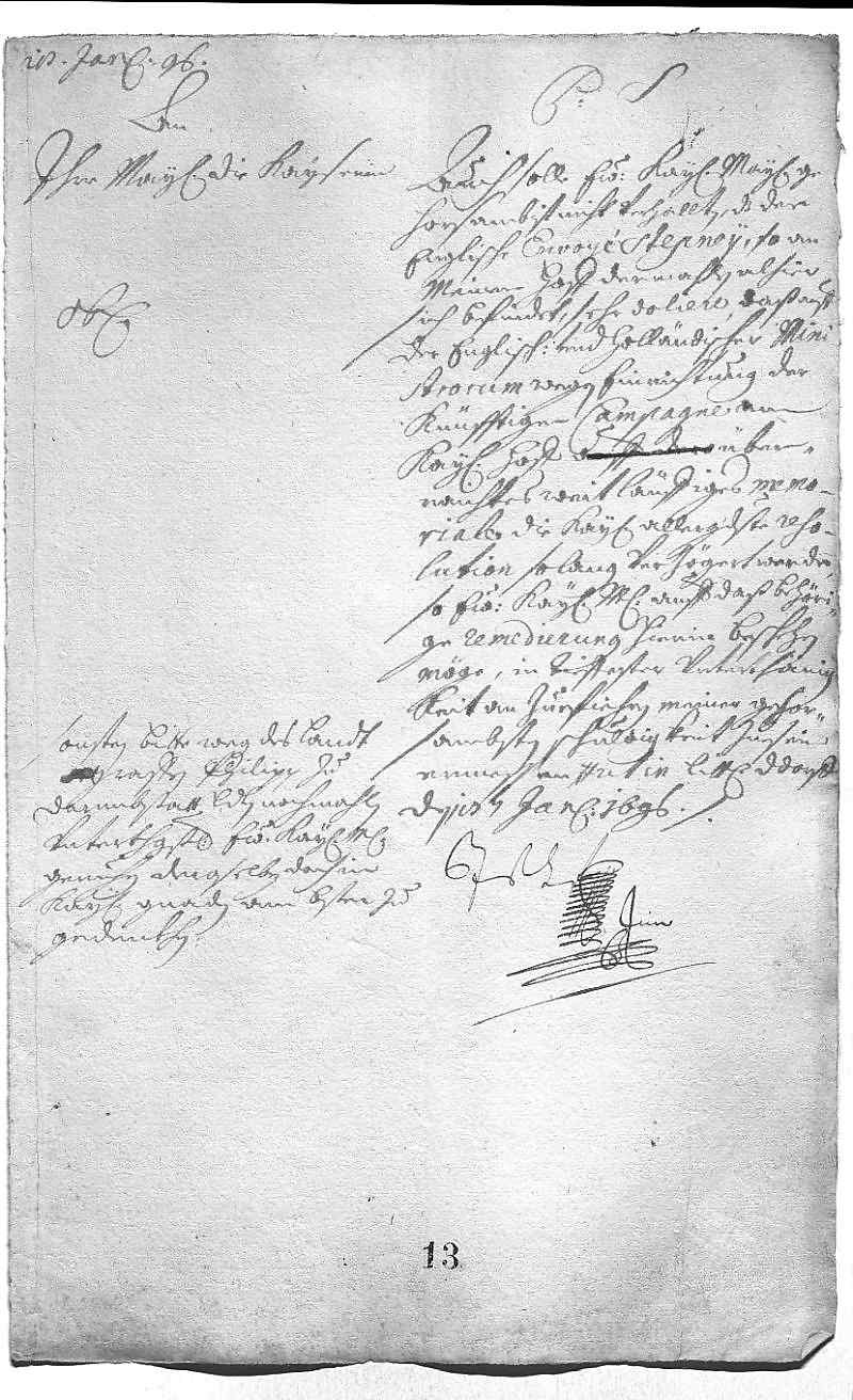 Johann Wilhelm von Pfalz-Neuburg an Eleonora Magdalena von Pfalz-Neuburg, Düsseldorf am 1696.01.18