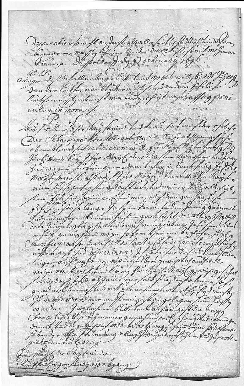 Johann Wilhelm von Pfalz-Neuburg an Eleonora Magdalena von Pfalz-Neuburg, Düsseldorf am 1696.02.09
