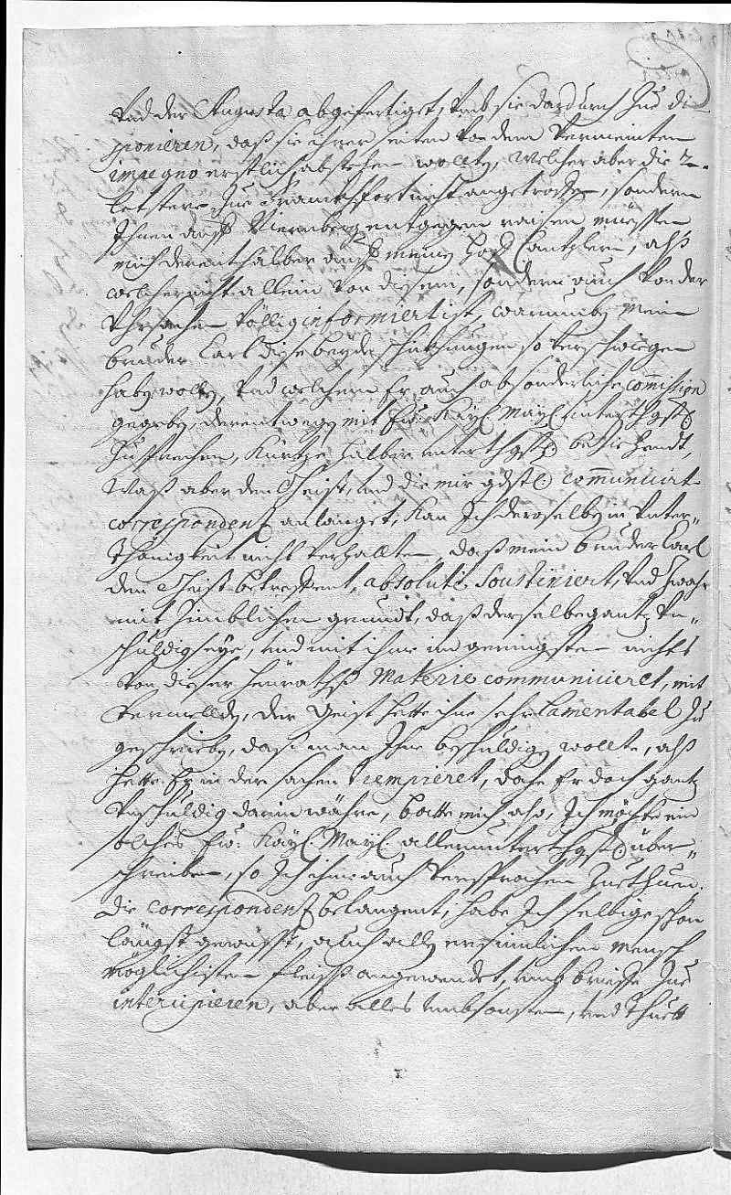 Entschuldigt sich für die etwas verspätete Antwort. – Hat den d’Autel nach Bamberg zum Kurfürsten von Mainz geschickt. Bruder Karl (Philipp) übermittelt Abschriften der Briefe des Kaisers an ihn und JW und an den Grafen, die alte Gräfin und die Gräfin Augusta von Hohenlohe, damit sie ihn von seiner vermeintlichen Verpflichtung (zur Heirat) entbinden. Die Korrespondenz (zwischen Bruder Karl (Philipp) und der Gräfin von Hohenlohe), von der JW schon länger weiß und die er nach Kräften abzufangen versucht hat, ist nun ganz beendet. – Bezüglich der Eheverhandlungen für König Joseph I. ist JW sicher, dass man dem Doktor Francke trauen kann. Der Doktor Stigler ist mit JWs Hofkanzler (Franz Melchior von Wiser) und den Portraits der Prinzessin von Dänemark unterwegs nach Wien . – Bezieht sich bezüglich seiner Truppen, des neuen Regiments und seines Schwagers Prinz Gian Gastone von Toskana auf seinen Hofkanzler. – Bittet wegen des Schallenberg um rasche Hilfe, da dieser übermütig wird. – Don Sebastiano Moratelli will sich altersbedingt zurückziehen; JW bittet um lebenslange Fortzahlung seines Gehalts wegen Moratellis langen treuen Dienstes für JWs verstorbene erste Ehefrau, Erzherzogin Maria Anna Josepha . Empfiehlt aus demselben Grund die arme Anna Liesel der kaiserlichen Protektion.