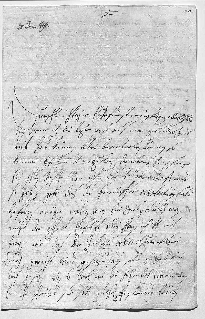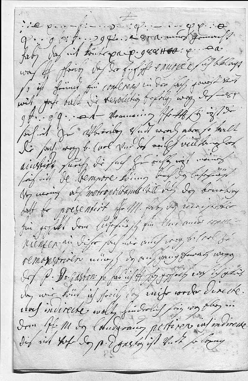 0001Durchleüchtiger Cuhrfürst, mein herz allerlibster herr bruder 0002In dem ich die lezte post aus mangel der zeit 0003nit hab können alles beantworten können, so 0004komme es heündt abzuelegen. Danebens empfange 0005ein schreiben von dero Liebden vom 19ten dis. Bruder Carl betreffendt, 0006so gebs gott, das die erwünschte resolution bald 0007erfolgen möge, wollen gern ein zeit gedulden, wan 0008nuhr der effect erfolgt. Allein kan ich dero Liebden nit 0009bergen, wie das der zellische Resident Stubenfoll hier 0010durch gereist vndt gesacht haben solle, er hab ein 0011brif gesehen von bruder Carl an die Hohenloh, warinnen 0012er ihr schreibt, sie solle nuhr bestendig bleiben,