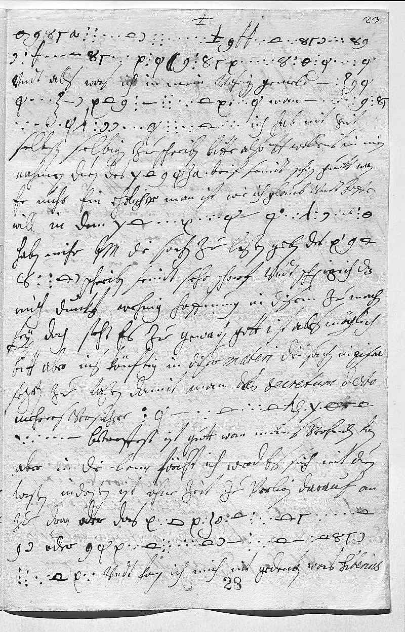 0032machen wirt, wie es alle rechte ca0033tolische dun, und auch die comunion0034vndt alls, was ich in mein vohrigen gemeld, so kan0035nikst draus werden, wan sie auch0036ein gottin were. Ich hab nit zeit, 0037selbsten selbigen zue schreiben, bitte also, dero Liebden wollens in mein 0038nahmen duen. Des Franzen brif seindt schon gutt, wan 0039er nuhr ein ehrlicher man ist, wie ich glaub vndt hoffen 0040will. In dem fridensnegotium0041haben mihr ihr Mayestät die sachen zue leßen geben, des d' Ar0042court schreiben seindt sehr scharf vndt schpizich, das 0043mich dunkt wehnig hoffnung in disem zu machen 0044sey, doch steht es zue gewarten, gott ist alles möglich. 0045Bitt aber, ins könftig in diser materi die sachen in zifra 0046sezen zue laßen, damit man das secretum desto 0047mehrers versichere. Vnserer gnädigen fraw mutter r 0048eis betreffent ist gutt, wan mans verhindern kan, 0049aber in die leng, förcht ich, werd es sich nit duen 0050laßen. Indeßen ist, ohne zeit zu verliren, darauf an 0051zue dragen oder das der Doktor verheir0052at oder anderwerts versorcht0053werde, vndt kan ich mich nit gedenken, was Tiberius