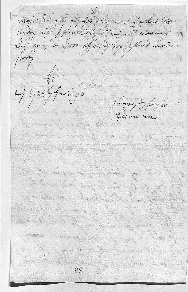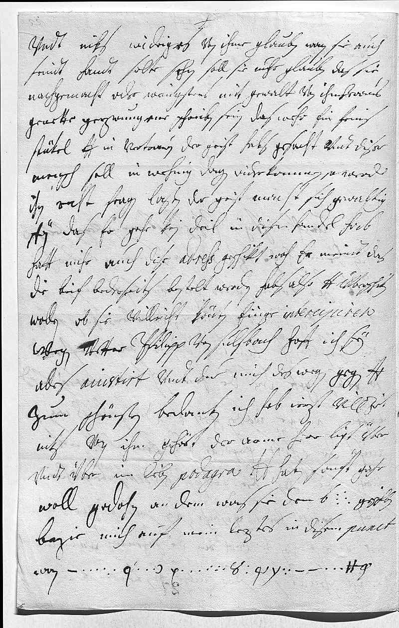 0013vndt niks widrigers von ihme glauben, wan sie auch 0014seindt handt solte sehn, soll sie nuhr glauben, das sie 0015nachgemacht oder wenigstens mit gewalt von ihm heraus 0016genette gezwungene schreiben sein. Das wehr ein feins 0017stükel, dero Liebden in vertrawen, der Geist habs gesacht, vndt diser 0018mensch soll in wehnig dagen wider kommen, so werde 0019ihn recht fragen laßen. Der Geist macht sich gewaltig 0020schön, das er gahr kein deil in diesem handel hab, 0021hatt mihr auch dise adress geschikt, woh er meindt, das 0022die brif bederseits bestelt werden. Habs also dero Liebden überschiken 0023wollen, ob sie villeicht könten einige intercipiren. 0024Wegen vetter Pfilipp von Sulsbach hoff ich, sey 0025alles aiustirt vndt due mich deswegen gegen dero Liebden 0026zum schönsten bedanken. Ich hab iezt vill zeit 0027niks von ihm gehört, der arme herr ligt über 0028vndt über im lieben podagra. Dero Liebden haben sonst gahr 0029woll gedahn an dem, was sie dem Pater Wieser geschriben, 0030bezie mich auf mein leztes in disem punct. 0031Wan sie nit die confession