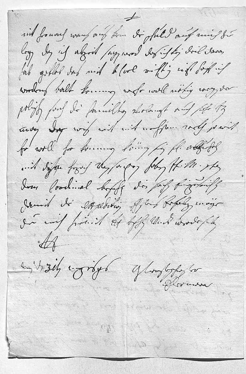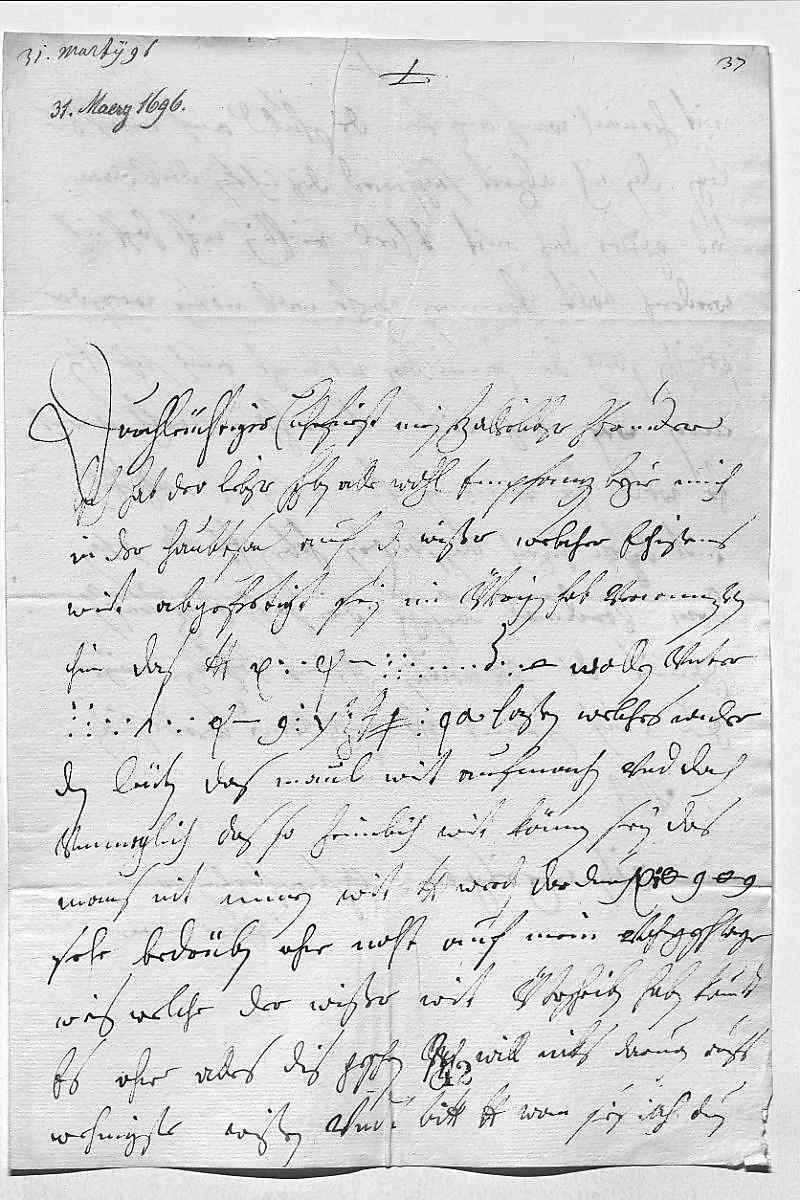 0015nit hernach, wans aus kem, die schuld auf mich zue 0016legen, dan ich alzeit sagen werd, das ich kein deil daran 0017hab. Gotlob, das mit bruder Carl richtig, iezt, hoff ich, 0018werdens balt kommen, wehr woll nötig wegen der 0019polnischen sach. Die Hamilton verlangt auch sehr iren 0020man, der Wiser wirt mit nechstem wekh, so wirt 0021er woll her kommen können, sein fraw abzueholen. 0022Mit dem Herzoch von Saxen haben ihr Mayestät schon 0023dem Cardinal befohlen die sachen einzurichten, 0024damit die expedition ehstens erfolgen möge. 0025Due mich hiemit dero Liebden befehlen vndt werde sterben 0026dero Liebden 0027getrewsteschwester 0028Eleonora 0029Wien den 31ten merz 1696