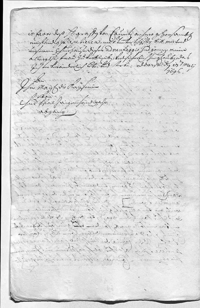 Johann Wilhelm von Pfalz-Neuburg an Eleonora Magdalena von Pfalz-Neuburg, Düsseldorf am 1696.05.13