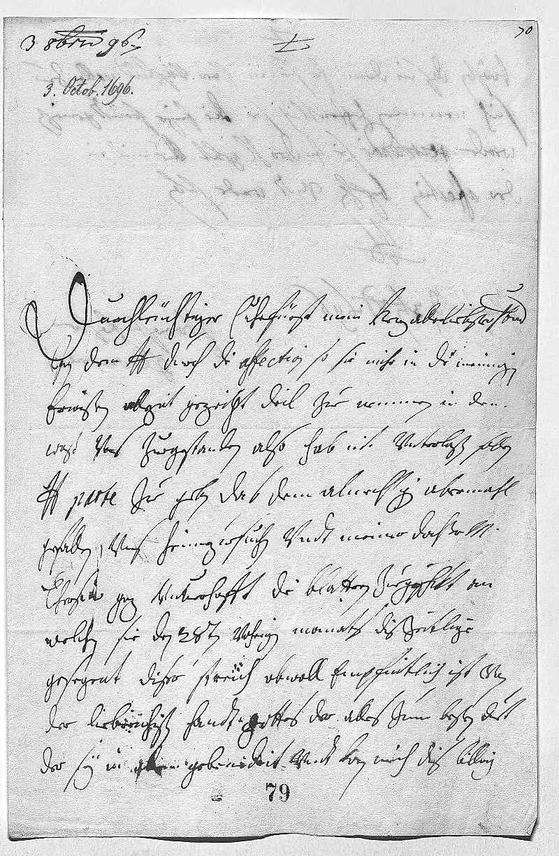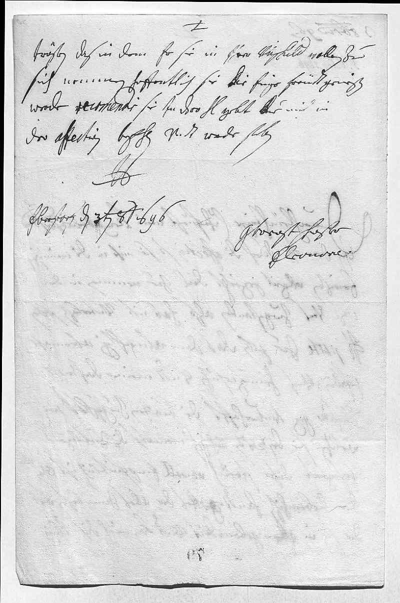 0013trösten, das, in dem er sie in ihrer vnschuld wollen zue 0014sich nemmen, hoffentlich sie die ewige freüdt genießen 0015werde. Recomendir sie in dero heiliges gebet, due mich in 0016dero affection befehlen vndt werde sterben 0017dero Liebden 0018getrewst schwester 0019Eleonora 0020Eberstorf den 3ten octobris 1696