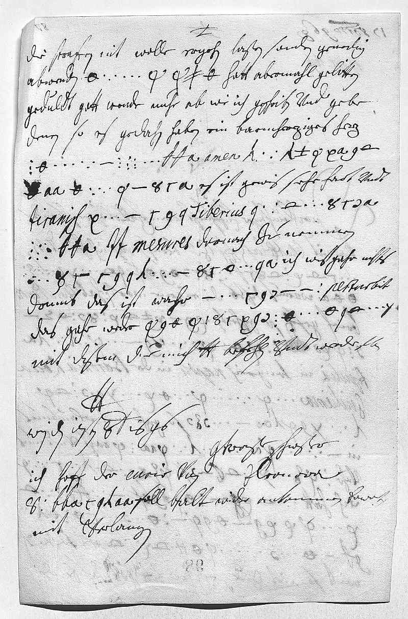 0017die straffen nit wolle ergehn laßen, sondern genedig 0018abwenden. Mein nam hatt abermahl gelitten, 0019geduldt, gott wende nuhr ab, wie ich geschriben, vnd gebe 0020denen, so es gedahn haben, ein barmherziges herz 0021um Iesu willen, amen. Gegen den ar 0022men menschen es ist gewis sehr hart vndt 0023tiranisch. Dis habTiberiusberichten 0024wollen, mesures darnach zu nemmen. 0025Ich hab geschriben, ich weis gahr nichts 0026drumb, das ist wahr, sie hats so perturbirt, 0027das gahr weder nam noch datum im brif. 0028Mit dißem due mich dero Liebden befehlen vndt werde sterben 0029dero Liebden 0030getrewste schwester 0031Eleonora 0032Wien den 17ten octobris 1696 0033Ich hoff, der curir von 0034Coppenhagen soll balt wider ankommen, erwarts 0035mit verlangen.