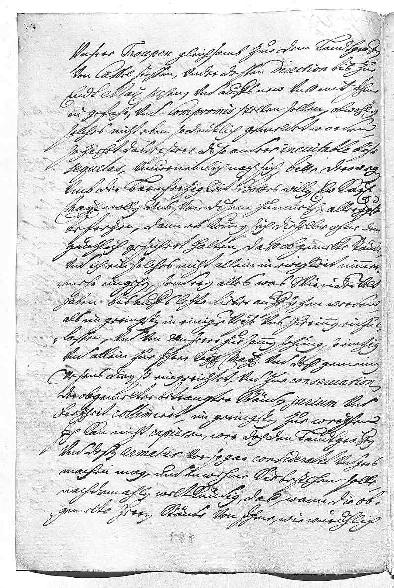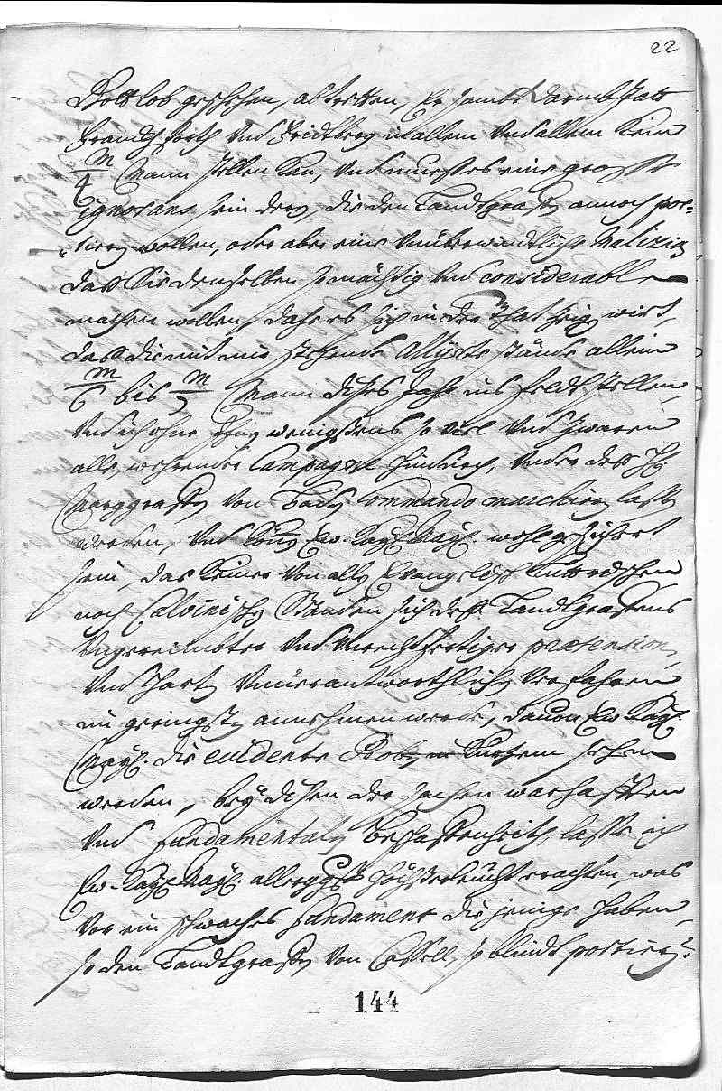 Dankt für die Protektion der oberrheinischen, westerwäldischen und wetterauischen Stände. Bittet um weiteren Schutz gegen die Forderung des Landgrafen von Hessen-Kassel, die Vereinigung der Stände wieder aufzulösen und alle ihre Truppen unter sein Kommando zu stellen. Tatsächlich kann der Landgraf aber kaum 4.000 Mann stellen, während die genannten Stände 6.000 bis 7.000 Mann und JW noch einmal so viele unter dem Kommando des Markgrafen von Baden marschieren lassen. – Dankt für EMTs Einsatz für seine Subsidien und hofft, bis Ende des Monats sechs Kavallerieregimenter und vier Infanterieregimenter vollständig zu haben und noch zwei zusätzliche zu kaufen. – Bezieht sich zur dänischen Heiratssache auf seinen letzten Bericht. – Was den Vorschlag der Gräfin Berlepsch angeht, wird der Graf Harrach die Königin (Schwester Maria Anna), die etwas wunderlich und empfindlich ist, am besten davon abbringen können. JW möchte seinen Feldzeugmeister Graf von Elter zur Wahrung seiner Interessen nach Spanien schicken; dieser wird gut mit dem Grafen Harrach kooperieren. – Bedauert, dass sein Vorschlag (betreffend eine Ehe zwischen König Joseph I. und der „Mademoiselle“ Elisabeth Charlotte von Orleans ) nicht in Frage kommt, da er ein Mittel gegen alle derzeit drohenden Übel wäre. Stellt aber alles EMTs reiflicher und unvoreingenommener Überlegung anheim. – Ist sicher, dass die Schwägerin (Pfalzgräfin Maria Anna Franziska) ihren Brief anders gemeint hat, als EMT ihn versteht. – Das Treffen zwischen Prinz Jakob (Sobieski) und Bruder Karl (Philipp) war nicht erfolgreich, denn der Prinz will die (polnische) Krone lieber JW oder dem jetzigen (Hoch- und) Deutschmeister (Bruder Franz Ludwig) gönnen als Bruder Karl (Philipp); JW will sie aber nicht. – Freut sich, dass der Bischof von Passau nach der polnischen Wahl Botschafter in Portugal werden soll. – Graf Hamilton wurden seine Verbrechen bereits schriftlich und mündlich vorgehalten, und da EMT in den ihr geschickten Protokollen nicht Gravierendes findet, wäre es sinnlos, sie ihm zu zeigen. – Wird EMTs Befehl bezüglich des Grafen von Limburg und Styrum gerne folgen. – Bittet um Ausstellung des Indigenats (wohl des böhmischen Indigenats für Prinz Gian Gastone von Toskana) und des Generalspatents für den Grafen von Nassau-Weilburg. – Empfiehlt das Anliegen seines neuen Obristkämmerers Graf von Bentheim .