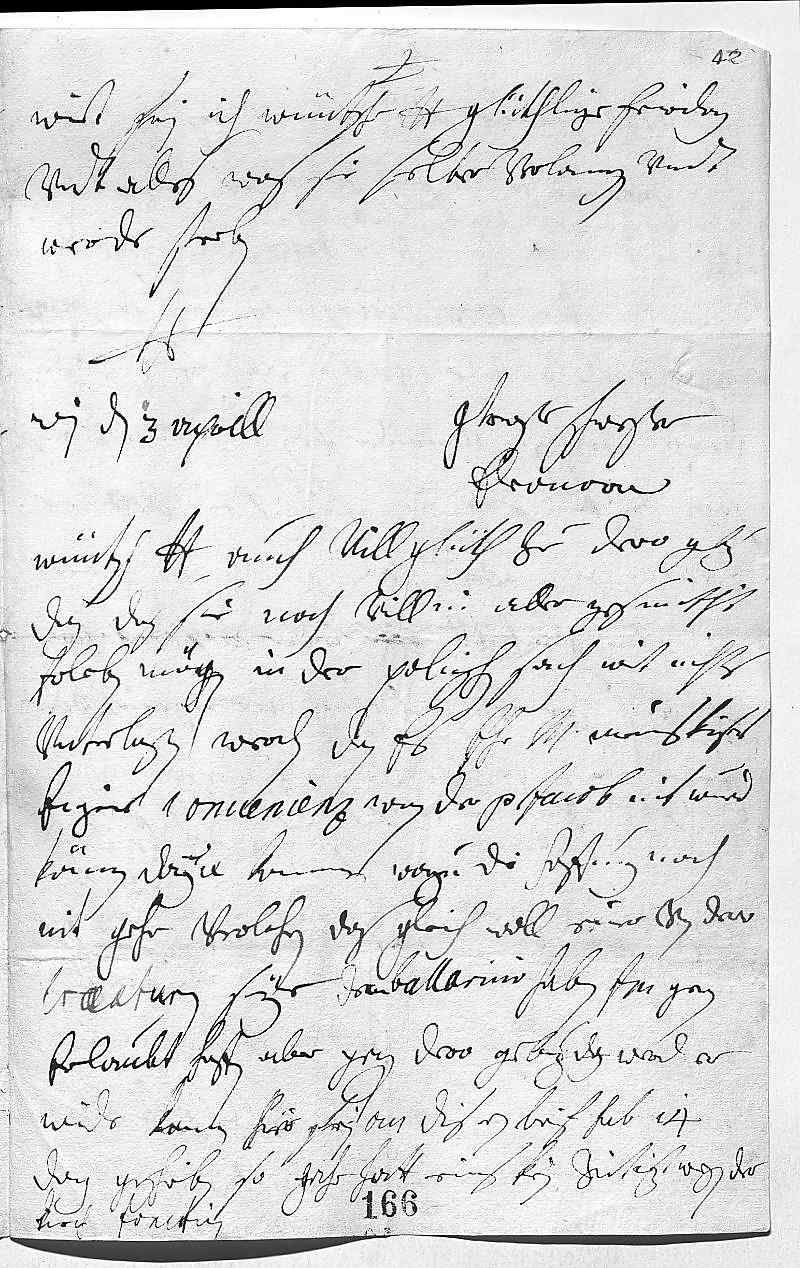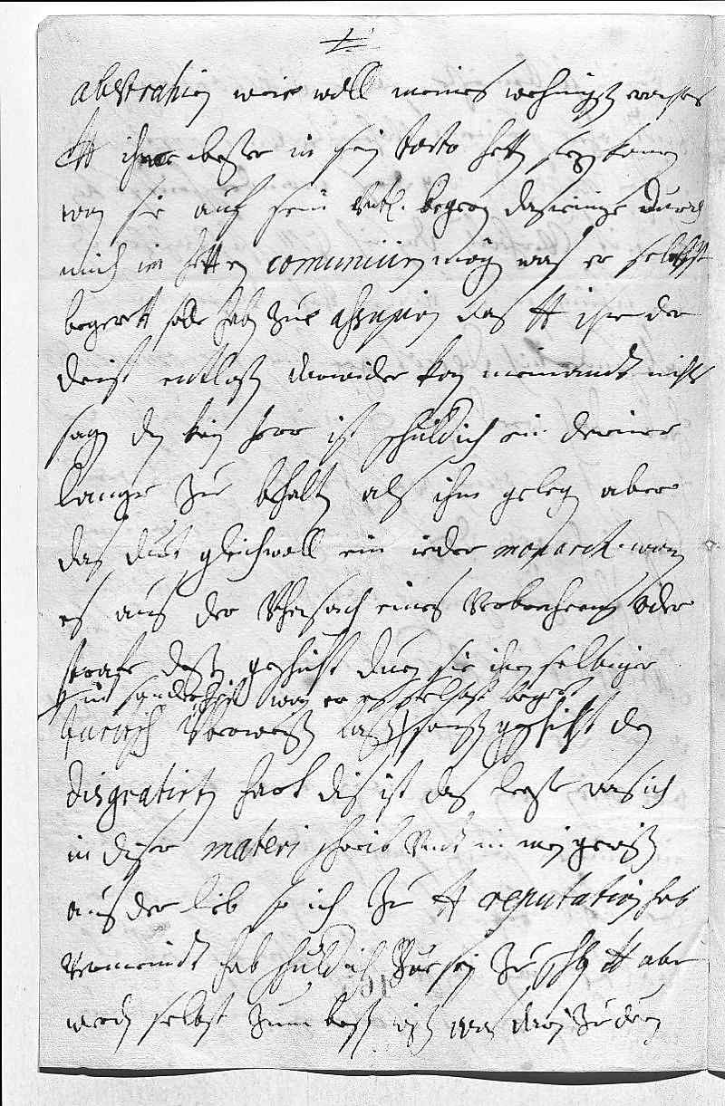 0085abstrahiren, wie woll meines wehnigsten erachtens 0086dero Liebden ihme beßer in sein torto hetten sezen konnen, 0087wan sie auf sein vnterdehnigstes begern dasienige durch 0088mich im hetten comuniciren mögen, was er selbst 0089begertt solle haben zue assupirn. Das dero Liebden ihne der 0090dienst entlaßen, darwider kan niemandt nichts 0091sagen, den kein herr ist schuldich, ein diener 0092langer zue behalten, als ihm gelegen, aber 0093das duet gleichwoll ein ieder monarch, wann 0094es aus der vhrsach eines verbrechens oder 0095strafe deßen geschicht, duen sie ihnen selbiger 0096iuritisch überweisen laßen, in sonderheit, wan er es selbst begert, sonsten geschiht den 0097disgratirten hart. Dis ist das lezte, was ich 0098in diser materi schreib, vndt in mein gewißen 0099aus der lieb, so ich zu dero Liebden reputation hab, 0100vermeindt hab, schuldich zue sein zu schreiben. Dero Liebden aber 0101werden selbst zum besten wißen, was darin zue duen