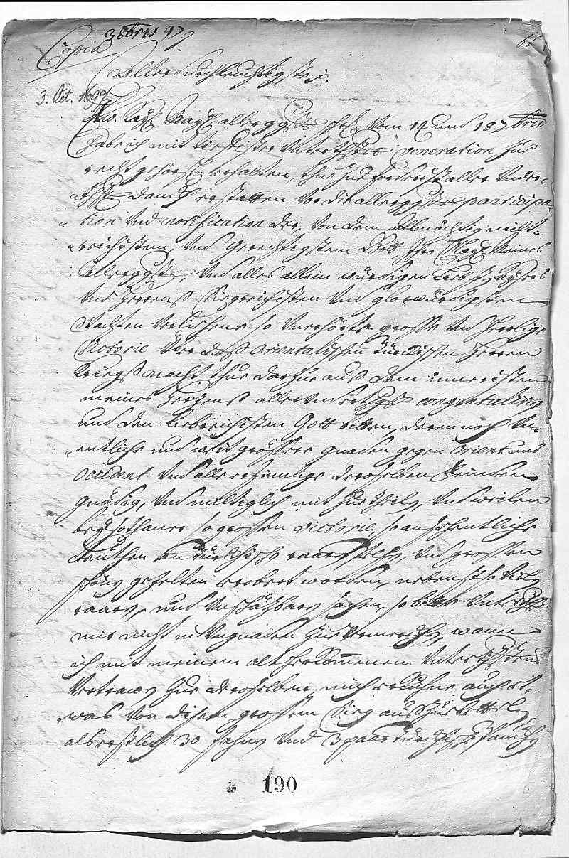 Johann Wilhelm von Pfalz-Neuburg an Eleonora Magdalena von Pfalz-Neuburg, Bensberg am 1697.10.03