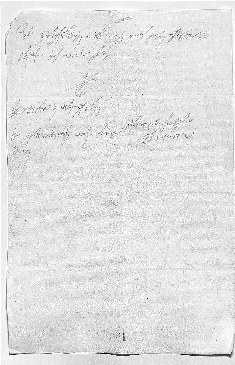0001Durchleüchtiger Curfürst, mein herzallerlibster herr bruder 0002Ich hab nit vnterlasen wollen, in dem heündt die 0003gutte zeitung kommen, das der türkh den 11ten dis geschlagen, solchs 0004alsobalten dero Liebden zu participiren. Gott hatt das gebett vndt 0005große andacht des volks bey dem genaden bildt 0006vnser lieben fraw, welche Pater Marcuß bey der ersten procesion 0007mit der exortation, segen, general comunion vndt papstligen 0008ablaß vndt segen angefangen vndt das voll bis auf 0009den heüntigen dag continuirt, das nie niks dergleichen hier 0010gesehen worden, angesehn vndt durch die vohrbitt derheiligen mutter 0011vns dise große victori widerumb verlihen. Dero Liebden vergeben 0012mihr, das dero schreiben nit beantwort, wirt mitt nechsten 0013geschen mit dem Pater . Bitt mich auch bey meiner fraw schwegrin