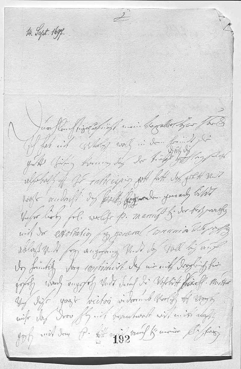 Eleonora Magdalena von Pfalz-Neuburg an Johann Wilhelm von Pfalz-Neuburg, Favorita am 1697.09.14