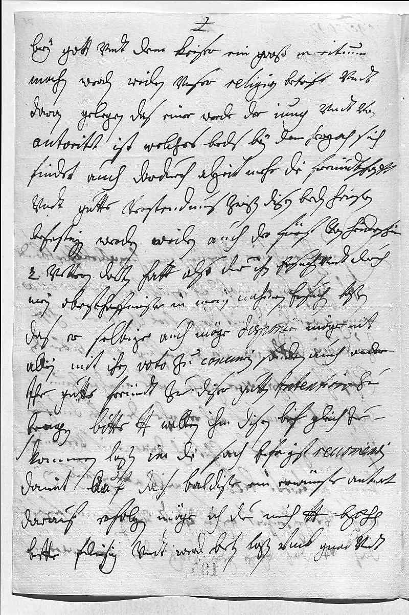 0012sie sich bey gott vndt dem Keiser ein groß meritum 0013machen werden, weilen es vnser religion betrift vndt 0014daran gelegen, das einer werde, der iung vndt von 0015autoritet ist, welches beids bey dem Herzoch sich 0016findet, auch dardurch alzeit mehr die freündtschafft 0017vndt gutte verstendnus zwißen disen beden heüsern 0018befestigen werden. Weilen auch der Fürst von Heidersheim 00192 vettern dorten hatt, also due ihn ersuchen vndt durch 0020mein Obersthoffmeister in mein nahmen ersuchen laßen, 0021das er selbige auch möge disponiren möge, nit 0022allein mit ihren voto zu concuriren, sondern auch ander 0023ihr gutte freündt zue diser gutten intention zu 0024bringen. Bitte, dero Liebden wollen ihm disen brif gleich zue 0025kommen laßen und im die sach eifrigst reccomendirn, 0026damit auf das baldiste ein erwünste antwort 0027darauf erfolgen möge. Ich due mich dero Liebden befehlen, 0028bette fleisig vndt werd beten laßen vmb gnad vndt