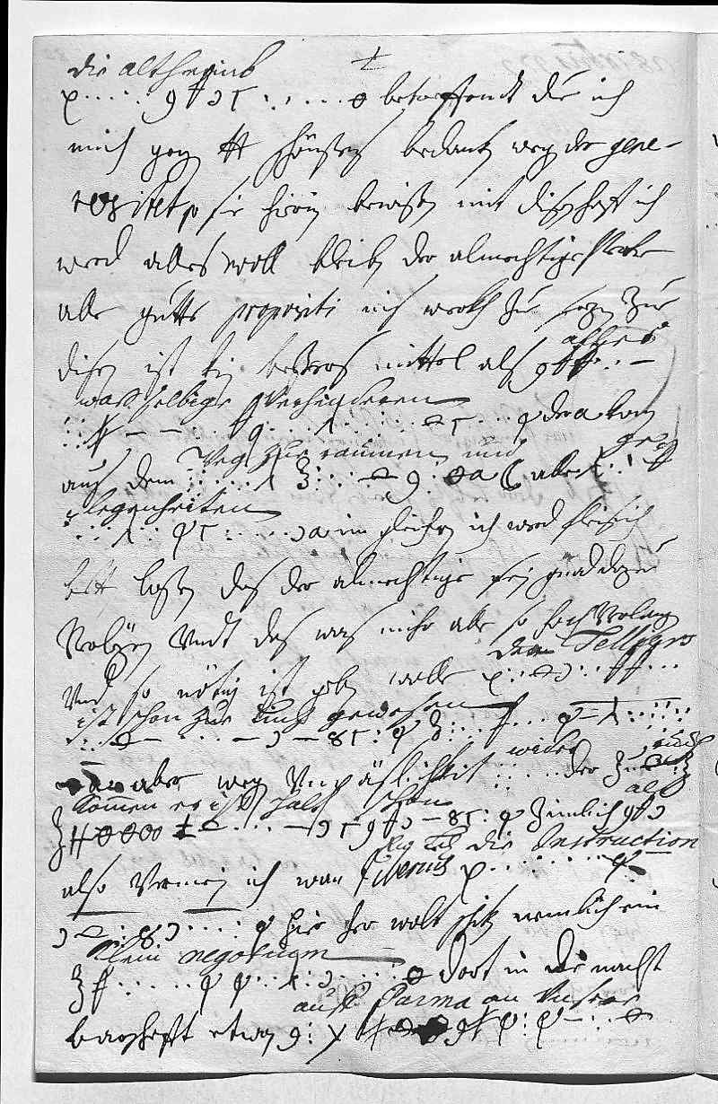 00141Die Altheimb betreffendt due ich 0015mich gegen dero Liebden schönstes bedanken wegen der gene- 0016rositet, so sie hierin bewißen, mit disen, hoff ich, 0017werd alles woll bleiben, der almechtige sterke 0018alle gutte propositi ins werkh zue sezen. Zue 0019disen ist kein beßers mittel als allein0020was selbige verhinderen kan 0021aus dem weg zue raumen und alle ge-0022legenheiten im gleichen. Ich werd fleisich 0023betten laßen, das der almechtige sein gnad dazu 0024verleyen vndt das, was mihr alle so hoch verlangen 0025vnd so nötig ist, geben wolle. Der Telliers0026ist schon zue Linz gewesen,0027aber wegen vnpäslichkeit wider zueruckh0028kommen, er ist halt schon zimlich alt. 0029Also vermein ich, wan ewer Liebden die instruction0030hier her wolt schiken, nemlich ein 0031klein negotium dort in die nacht- 0032barschefft etwan auff Parma an vnsere