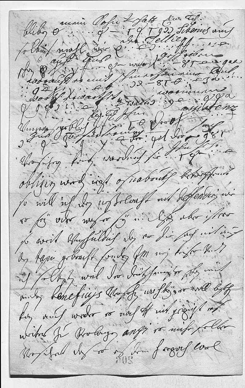 0052bliben. Mein sohn hatt ewer Liebden auch 0053selbigs mahl, wie der Tellier0054schon auff Lins wahr, geschriben, 0055worauff er mit schmerzen ein ant-0056worth erwarthet, worinnen0057vnmasgeblich ewer Liebden ihm der assistenz0058zur befürderung der sach0059versichern könten, wardurch sie ihn sehr0060obligirn werden. Iezt Osnabrukh betreffendt, 0061so will ich den Neßelraht nit deffendiren, wie 0062er sey oder was er sey, in disen aber ist er 0063so weit vnschuldich, dan er die sach nit auf 0064den tapi gebracht, sondern ihr Mayestät, mein Keiser, vndt 0065ich selbsten, weil der Deütschmeister schon mit 0066andren beneficiis versehen, wahbey er woll bestehen 0067kan, auch weder er noch dero Liebden nit gezeigt, es 0068weiters zue verlangen, anzi er mihr selber 0069versichert, das er es dem Herzoch Carl