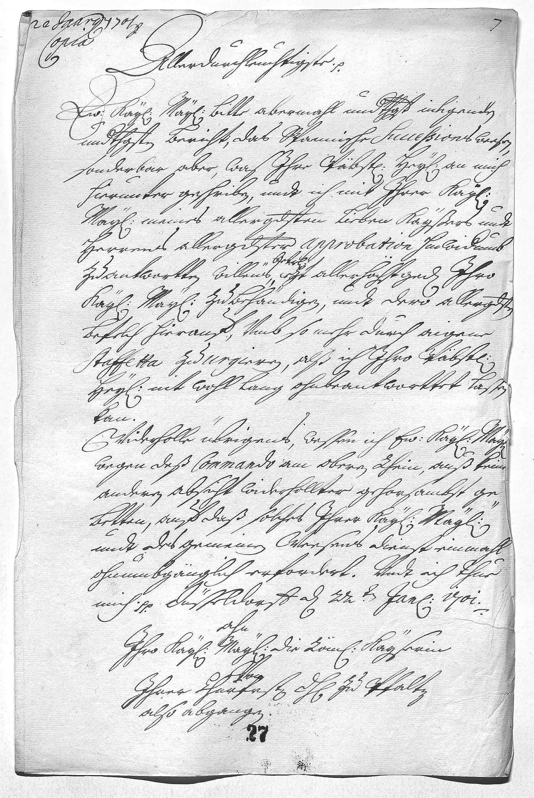 Johann Wilhelm von Pfalz-Neuburg an Eleonora Magdalena von Pfalz-Neuburg, Düsseldorf am 1701.01.22
