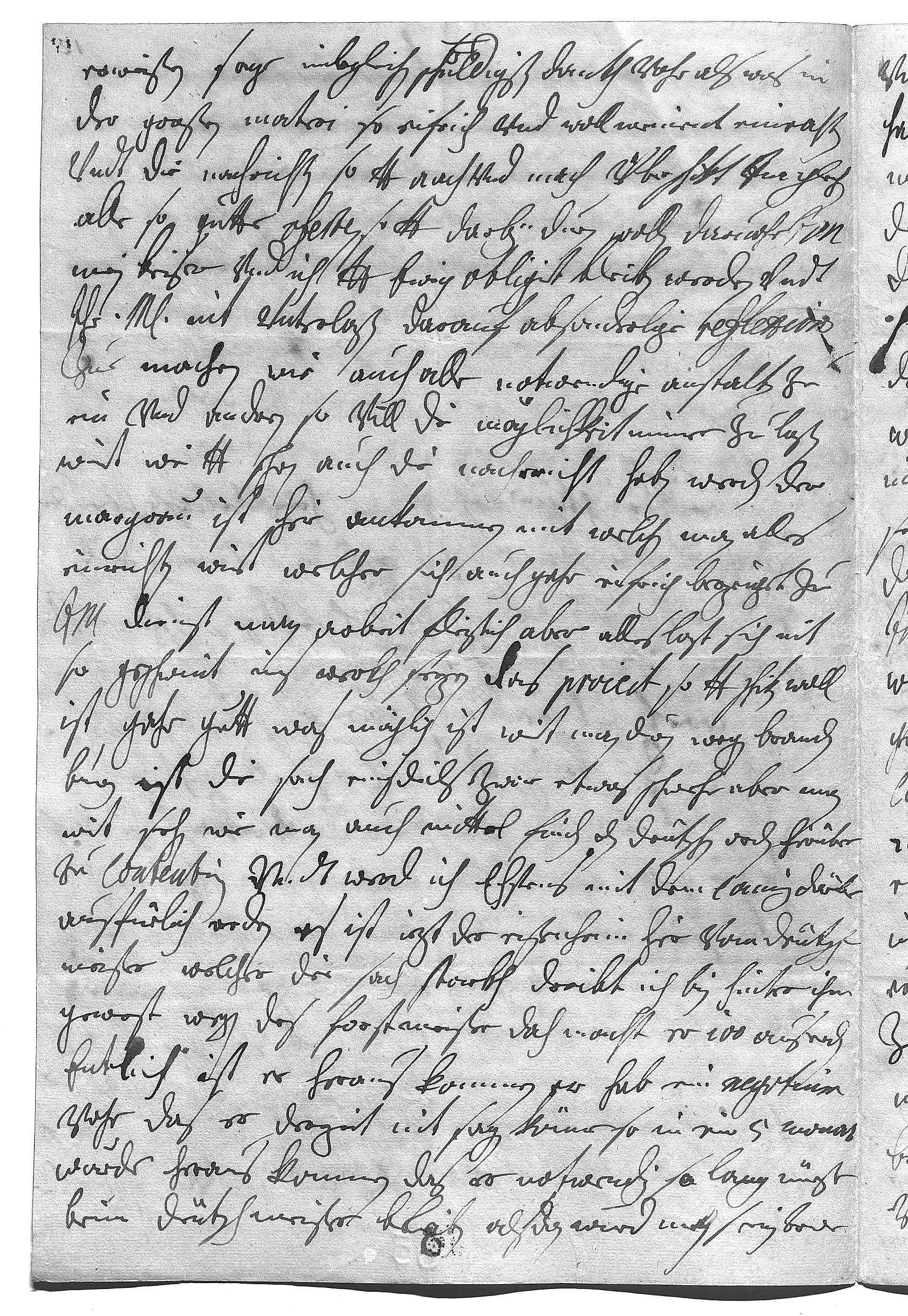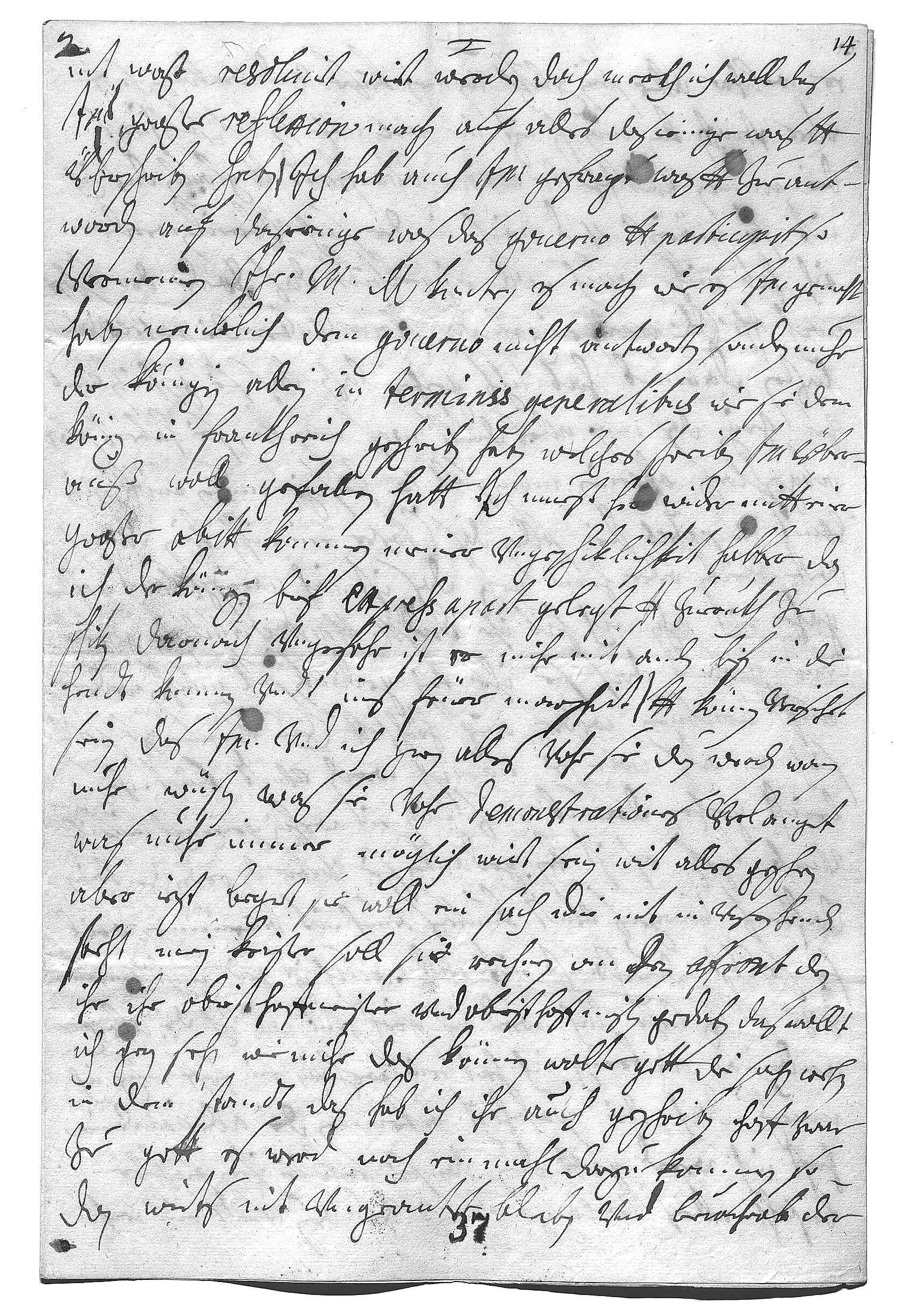 0063mitt bruder carl wirt niks draus, dan sie mit dem 0064gelt nit aufkommen können. Ehr hatt sein Obristleitnand, 0065den Tirheim, her geschikt, der bey mein Beichtuatter angebracht 0066hatt, das man ihm eine von Liechtenstein anbiete, offeriren ihm 00671300000 vnd die herschafft Sternberg in Schleßien, so auch 300000 0068wert ist. Wegen des ersten bin ich recht froh, das niks draus ist 0069worden, weil einmahl die famille nit vnsern curhaus 0070gemeß, vndt dieße leztere kunt ich einmahl gahr nit 0071ein rahten, dan die meisten cauaglieri hier im land 0072lauter vettern vndt bäßle wehren. Ich wehr der meinung, 0073man solle vmschawen vmb eine von guttem hauß, wan 0074sie auch gleich nit vill hatt, dan wan er nuhr ein wehnig 0075wurd wirtschafften wollen vndt nit so gahr splendide 0076hoffstatt halten, sondern sich streken nach der deken, könte 0077er mit deme, was er von denen polnischen güttren zieht, 0078was dero Liebden ihm geben vnd was er von ihr Mayestät, mein Keiser, 0079hatt, woll seinem standt gemeß mit einer gemahlin 0080leben. Dan was hilft vill gelt, wan er eine nimbt, 0081die vnsern cuhrhaus nit gemähß ist. Hirüber erwarte auch 0082dero Liebden intention. Was anbelangt ob mein sohn, der Konig, solle 0083ins feld gehen, auch der Carl, bede, einer oder keiner, darüber 0084deliberirt man noch starkh, seindt ville vhrsachen pro 0085vnd contra. Bede haben groß verlangen, weis noch