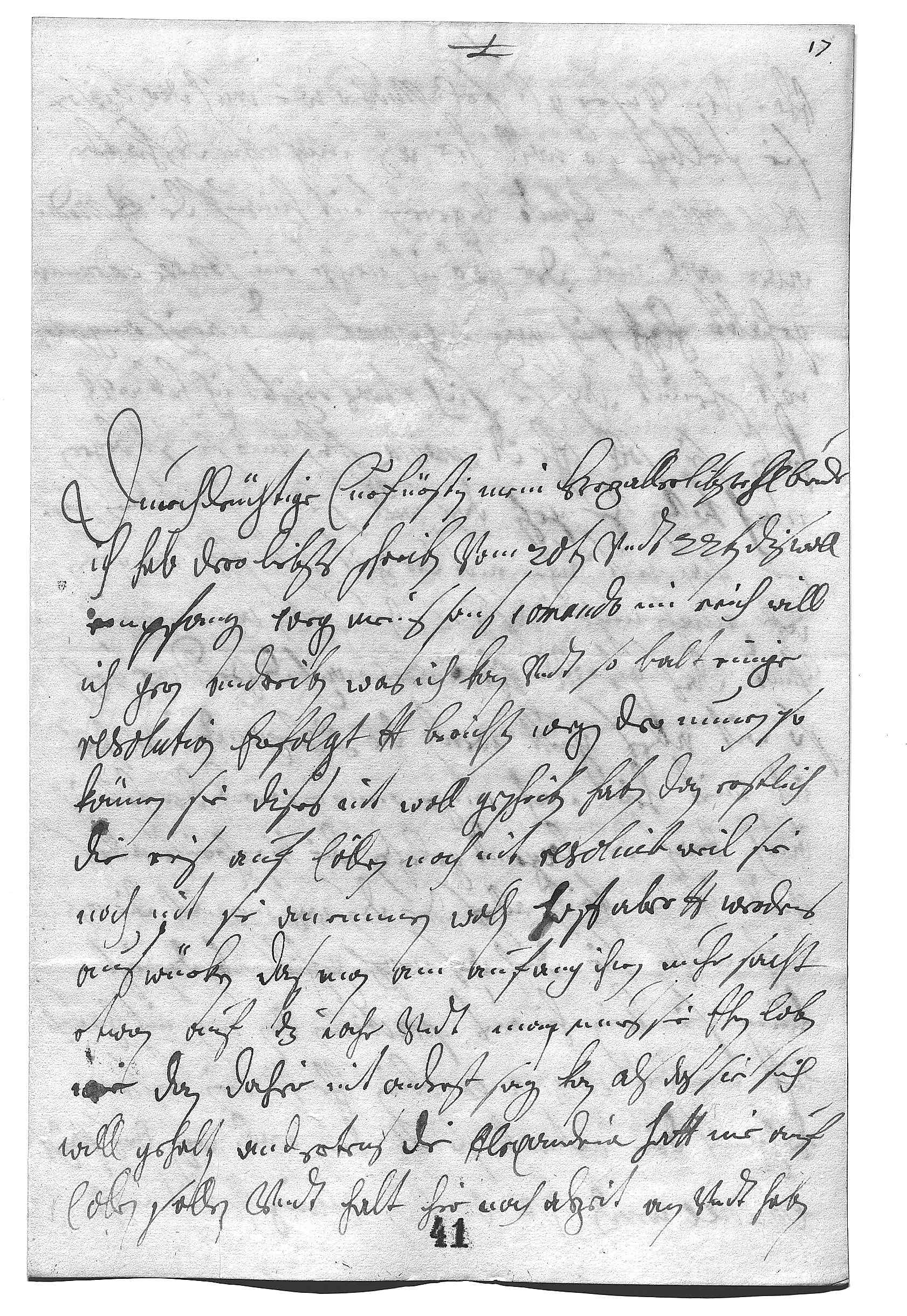 0001Durchleüchtige Curfürstin, mein herzallerlibster herr bruder 0002Ich hab dero liebsts schreiben vom 20ten vndt 22ten dis woll 0003empfangen. Wegen meins sons comando im Reich will 0004ich gern andreiben, was ich kan, vndt so balt einige 0005resolution erfolgt, dero Liebden berichten. Wegen der nunen, so 0006können sie dises nit woll geschriben haben, dan erstlich 0007die reis auf Cöllen noch nit resoluirt, weil sie 0008noch nit sie anemmen wollen, hoff aber, dero Liebden werdens 0009auswürken, das man am anfang ihnen nuhr sacht, 0010etwan auf das iahr, vndt man mues sie ihnen loben, 0011wie dan dahier nit anderst sagen kan, als das sie sich 0012woll gehalten. Andertens, die Alexandrina hatt nie auf 0013Collen sollen vndt halt hir noch allzeit an, vndt haben