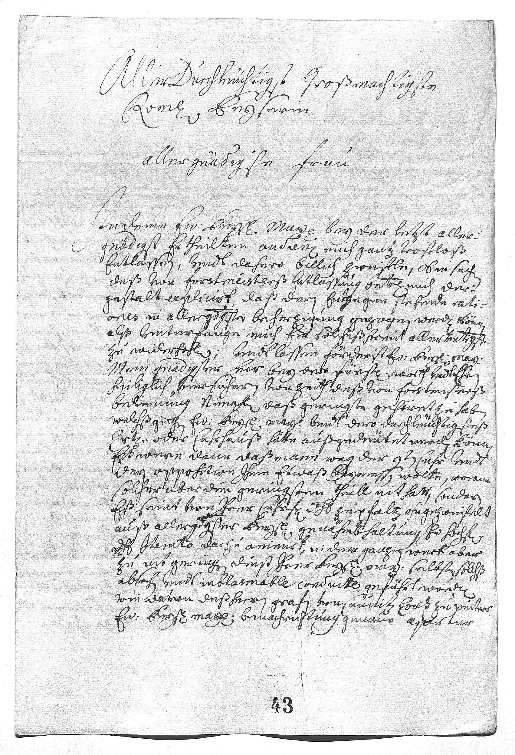 0014ihr Durchlaucht, vnser geliebste fraw mutter, wie auch der Bischoff 0015sie selbst so woll hier als nach Rohm deshalben 0016reccomendirt vndt begerens nit hinauf, die Anna Magdalena 0017aber woll. Mit der hab ich nechst ein starke carauane 0018gehabt, hatt sich ganz desperat vnd narisch angestelt, 0019izt scheindt, das sie sich etwas ergibt. Ich hab wollen 0020haben, sie soll ihr Durchlaucht mama schreiben vndt selbst begern, 0021nach Kollen zu gehen, das will sie noch nit duen, sagt, 0022sie kan nit ligen, mit der zeit wirt sichs schon geben. 0023Dero Liebden machen nuhr, das sies zu Collen anemmen, 0024vndt das ihr Durchlaucht fraw mutter nach Düßeldorf gehen, 0025so wirt alles gutt werden. Die Alexandrina, hoff 0026ich, wirt hir noch angenommen werden, der hab ich 0027auch braf die agendt geleßen, die verschpricht alles 0028vndt ist zu friden alles zu duen, was man will. Die ersten 0029brif müßen sie durch das mensch geschikt haben, dan iezt 0030könen sie keinen hinaus practiciren, den man nit zuuohr 0031list. Wegen des Papsten aprobiren ihr Mayestät, mein Keiser, 0032höchstens die antwort, so dero Liebden duen wollen. Wegen des französischen 0033enuoiee werden ihr Mayestät durch den Couniz dero Liebden mit mehren