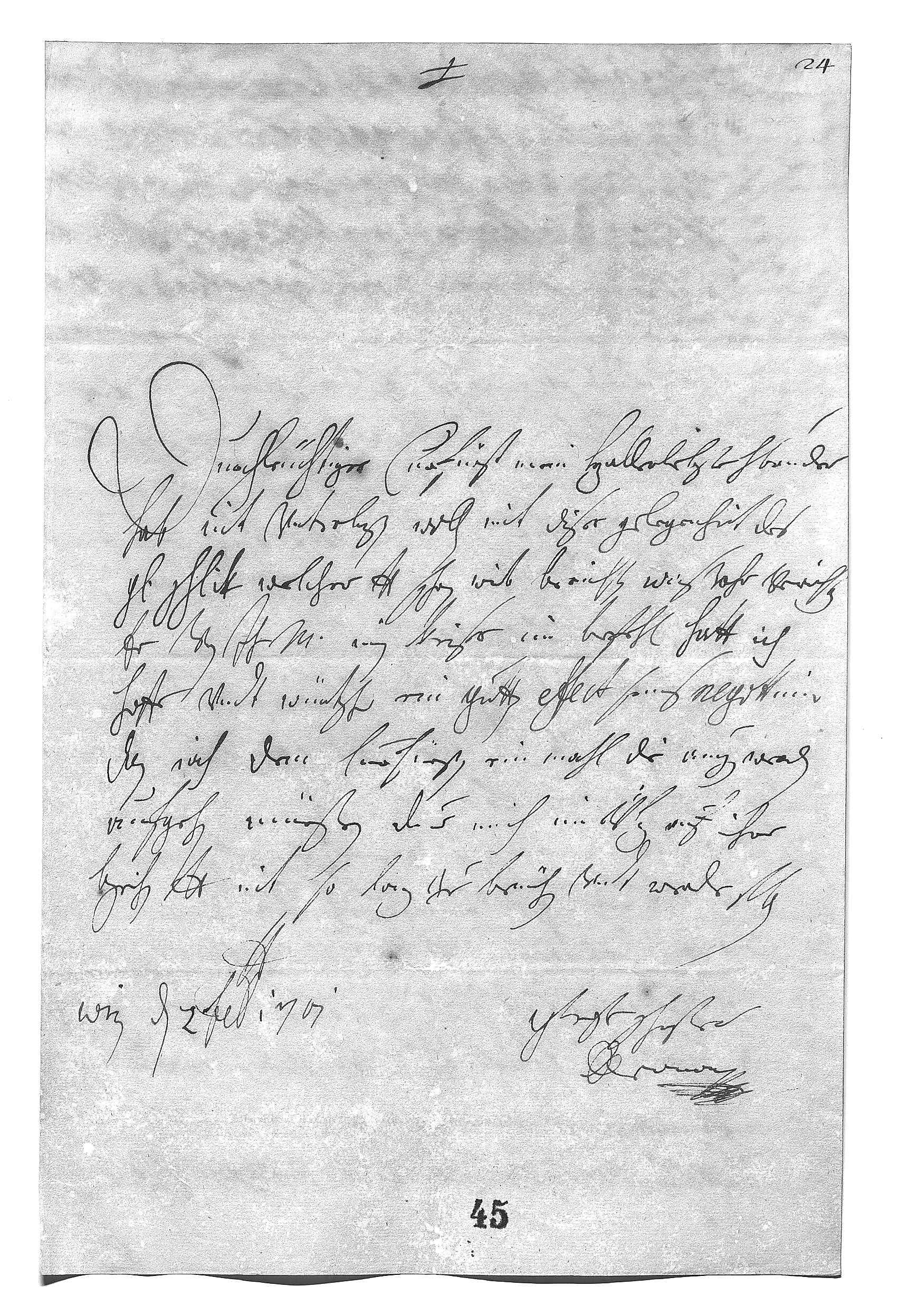 0001Durchleüchtiger Curfürst, mein herzallerliebster herr bruder 0002Hab nit vnterlasen wollen, mit diser gelegenheit des 0003Graven Schlik, welcher dero Liebden schon wirt berichten, was vohr verichtung0004er von ihr Mayestät, mein Keiser, in befehl hatt, zu schreiben. Ich 0005hoffe vndt wüntsche ein gutten effect seins negotium, 0006dan iah dem Curfürsten ein mahl die augen werden 0007aufgehen müeßen. Due mich im übrigen auf ihne 0008beziehen, dero Liebden nit so lang zu bemühen, vndt werde sterben 0009dero Liebden 0010getrewste schwester 0011Eleonora 0012Wien den 2 februarij 1701