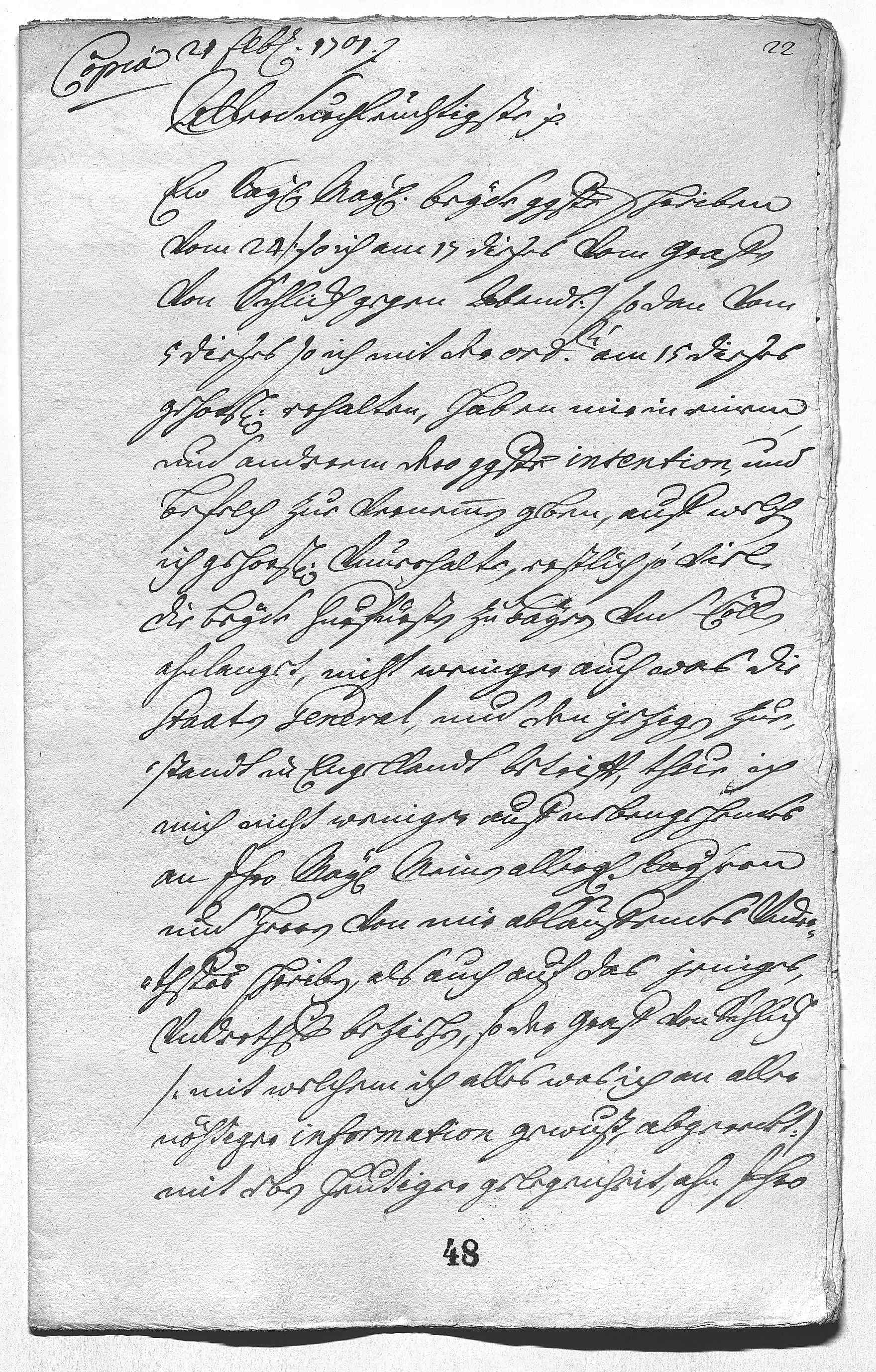 Johann Wilhelm von Pfalz-Neuburg an Eleonora Magdalena von Pfalz-Neuburg, Düsseldorf am 1701.02.21