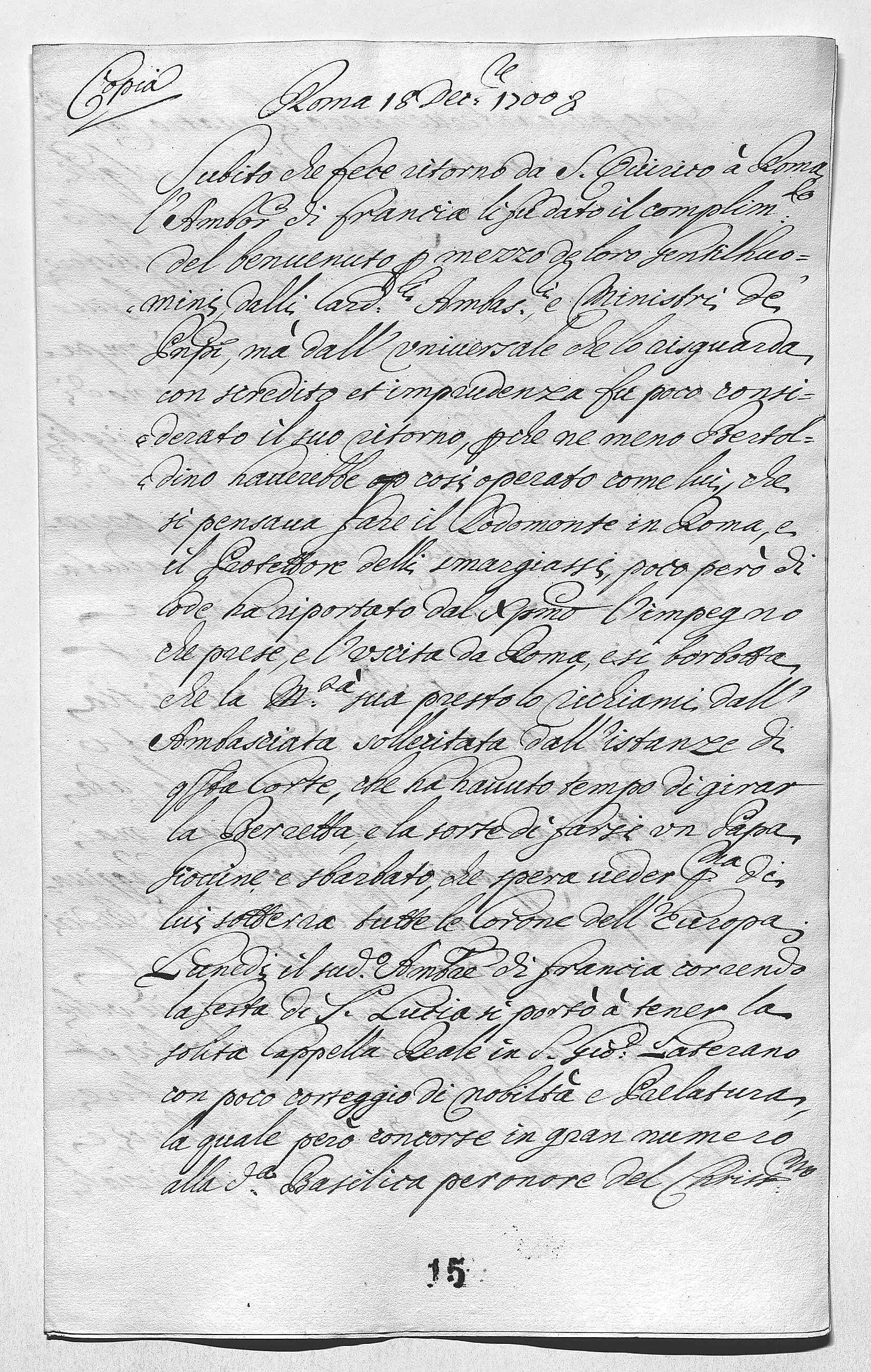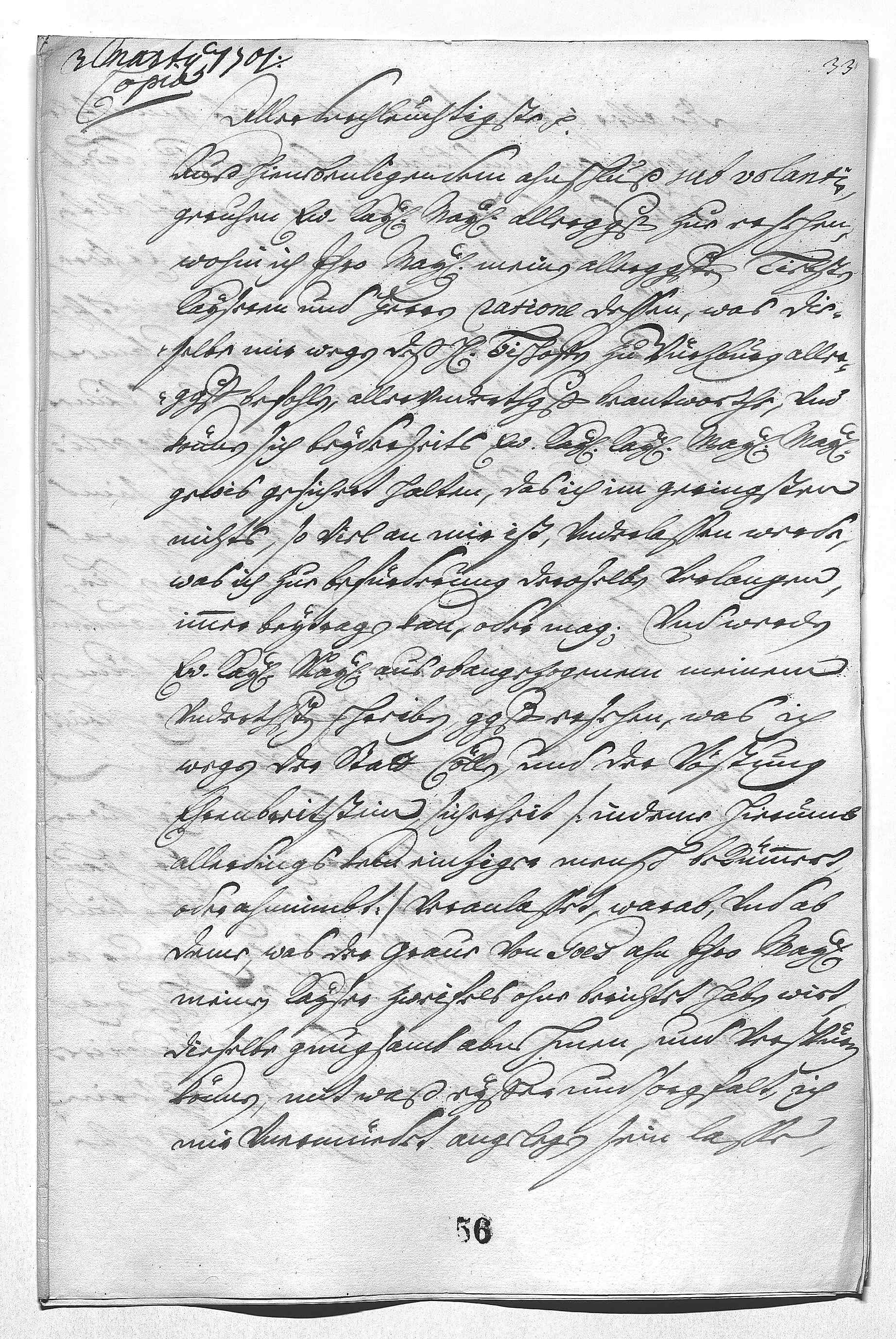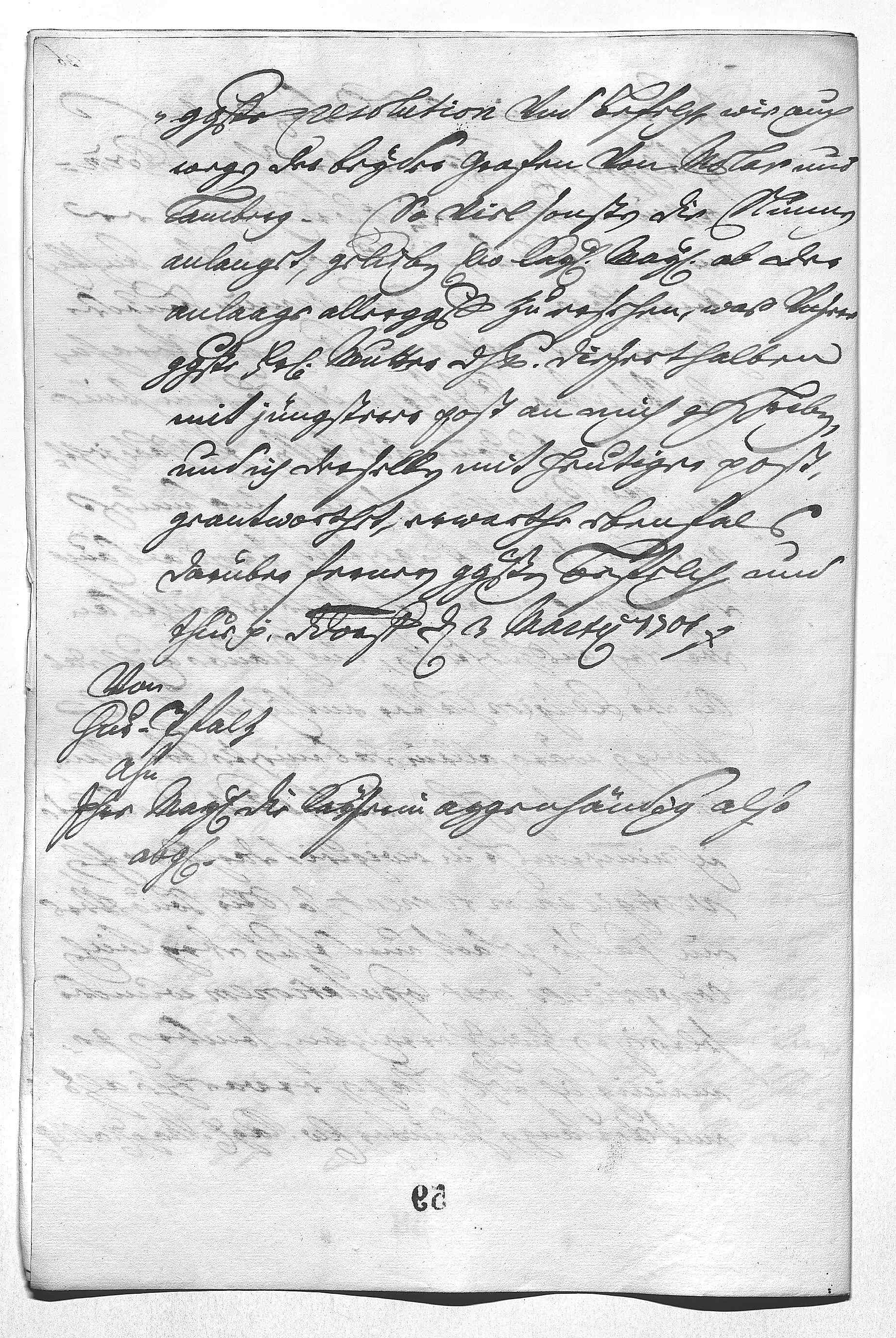 Wird dem Befehl des Kaisers wegen des Bischofs von Würzburg eifrig nachkommen. – Hat Maßnahmen zur Sicherheit der Stadt Köln und der Festung Ehrenbreitstein ergriffen. – Bleibt treu und eifrig an der Seite des Erzhauses, solang er sich nicht im Stich gelassen sieht. Dazu muss ohne weiteren Aufschub die kaiserliche Armee an den Oberrhein marschieren und vom König (Joseph I.) kommandiert werden, und JW braucht Subsidien für seine Truppen, denn von seinen armen Landen ist nichts mehr zu erzwingen. – Hat gehört, dass der Markgraf (Louis von Baden) rät, mit dem Aufmarsch der Truppen auf die Kriegserklärung Englands und Hollands zu warten. Das würde aber Frankreich den Weg bahnen und womöglich sogar die Kaiserkrone gefährden. – Ohne den König werden alle den Mut verlieren angesichts der drohenden französischen Invasion und des unerträglichen Kommandos des Markgrafen. – EMT möge beim Kaiser erwirken, dass JW im kommenden Krieg in den benachbarten feindlichen Ländern rekrutieren und Kontributionen einheben darf. Dies ist nötig, wenn sie nicht will, dass er von Land und Leuten verjagt und zu verzweifelten Handlungen getrieben wird. – Pater Wolf hat JW geschrieben, dass er JWs Bruder Pfalzgraf Karl (Philipp) die Prinzessin von Ansbach als Braut vorgeschlagen hat. JW hat sie gesehen und an Gestalt und Humor nichts an ihr auszusetzen; die Konversion müsste aber ganz geheim vorbereitet werden. – Erwartet EMTs Befehl wegen der Grafen Lamberg und Mollard. – Ebenso wegen der Nonnen (Anna Magdalena und Alexandrina); legt seine Korrespondenz mit der Mutter bei.
