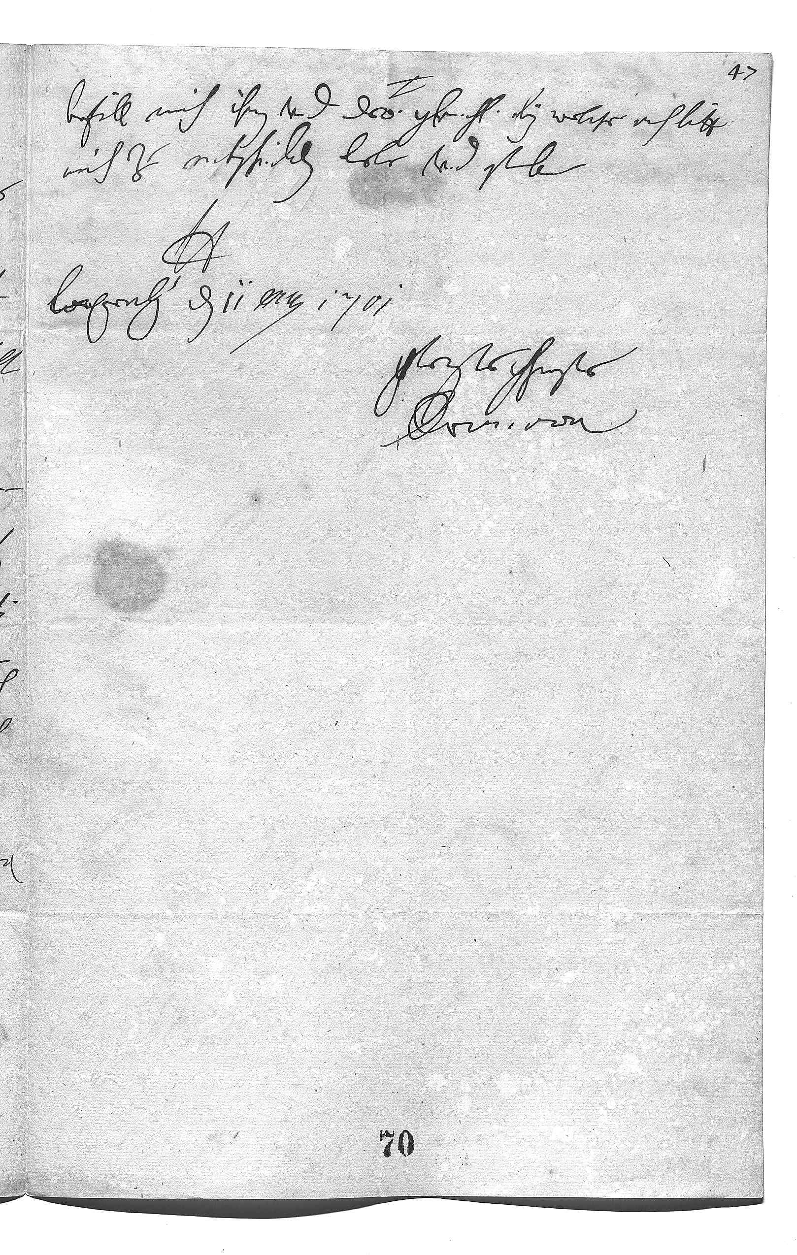 0013dero Liebden wollen mihr das documentum, so er 0014verlangt, balt schiken, ich hab ihm versichert, das 0015es kommen werd, vnd indeßen vmb den 0016consens gebetten. Sie verlangt selbst balt 0017wekh, dan hier vnter dem orden es ihr nit gefalt, 0018hingegen die schwester Alexandra verlangts vohr ihr leben. 0019Die carmeliter vnd ihr General haben es abge- 0020schlagen, aber durch den Papst kan mans erhalten, 0021ist schon ein exempel, doch der hiesige Nunti 0022hatt eifrig geschriben. Wan dero Liebden auch ihrerseits durch 0023den cölnischen Nunti vnd die Königin in Schpanien auch 0024es zu Rohm wirt solicitiren, so gehts. Die nunen 0025verlangens selbsten, vnd weil schon ein exempl 0026ist, kans der Papst woll duen. Die patres werden 0027sich zwar, förcht ich, oponiren, weil sies schon negirt, aber ich glaub, 0028sie werdens schon gern geschen laßen, wan ihr Heiligkeit durch 0029dero autoritet sie aus disem impegno brengen. 0030Mues enden, ein andres mahl ein mehres,