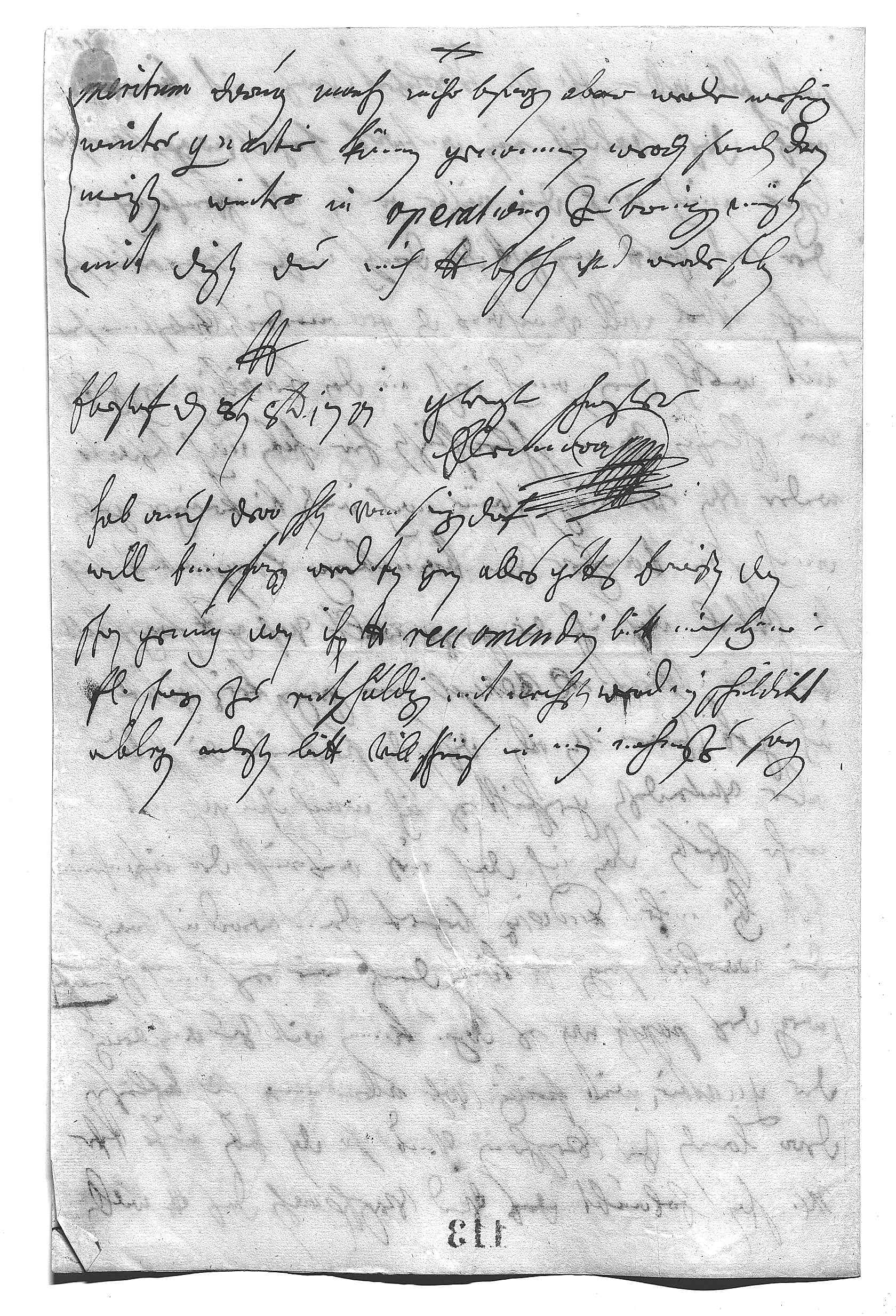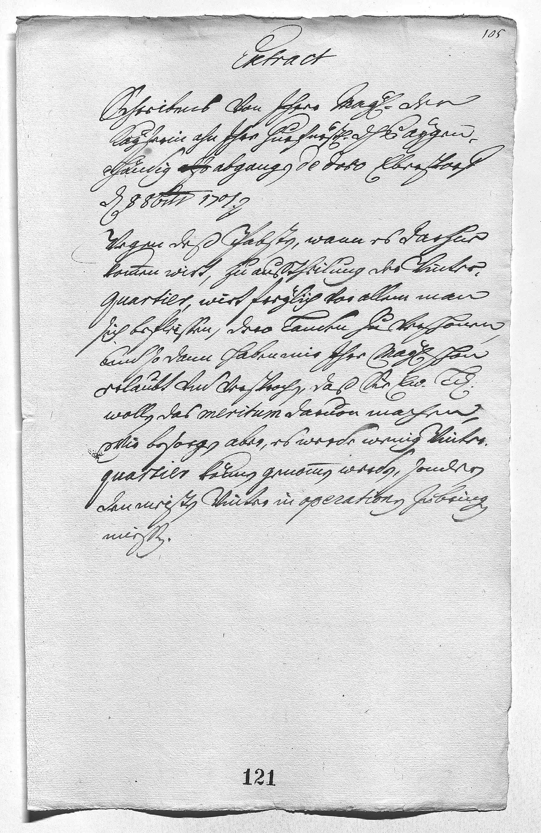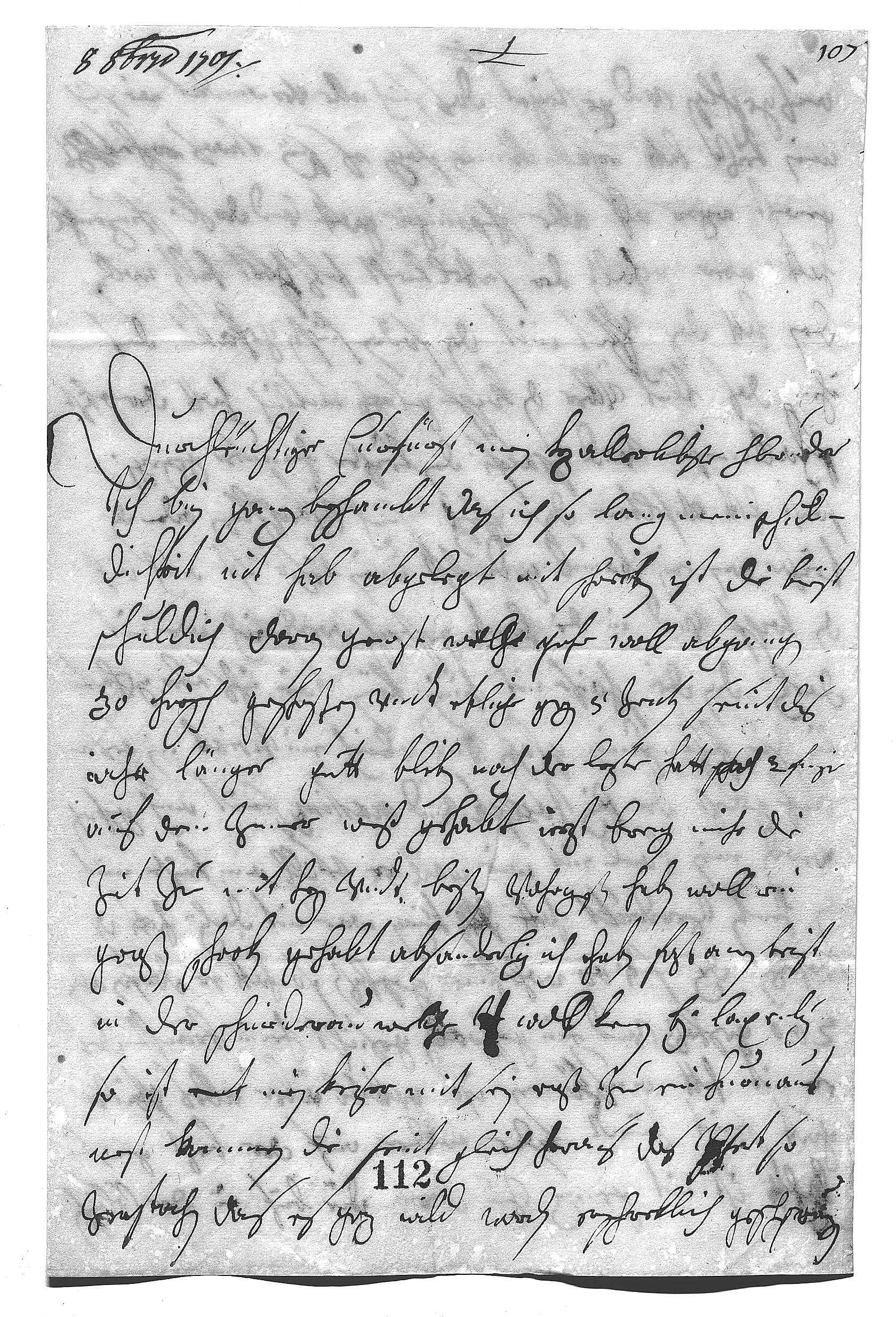 00018 octobris 17010002Durchleüchtiger Curfürst, mein herzallerlibster herr bruder 0003Ich bin ganz beschambt, das ich so lang mein schul- 0004dichkeit nit hab abgelegt mit schreiben. Ist die bürst 0005schuldich daran gewest, welche gahr woll abgangen, haben000630 hirsch geschoßen vndt etlige gegen 5 zentner, seint dis 0007iahr länger gutt bliben, noch der lezte hatt soh 2 finger 0008auf dem zemer weiß gehabt, iezt brengen mihr die 0009zeit zu mit hezen vndt beißen. Vohrgestren haben woll ein 0010großen schreken gehabt, absonderlig ich, haben faßanen beist 0011in der Schniederau, welche dero Liebden woll kennen, bey Laxenburg. 0012So ist ent mein Keiser mit sein roß zu ein hurnaus 0013nest kommen, die seindt gleich heraus, haben das pfert so 0014zerstochen, das es ganz wild worden, erschreklich geschprungen,